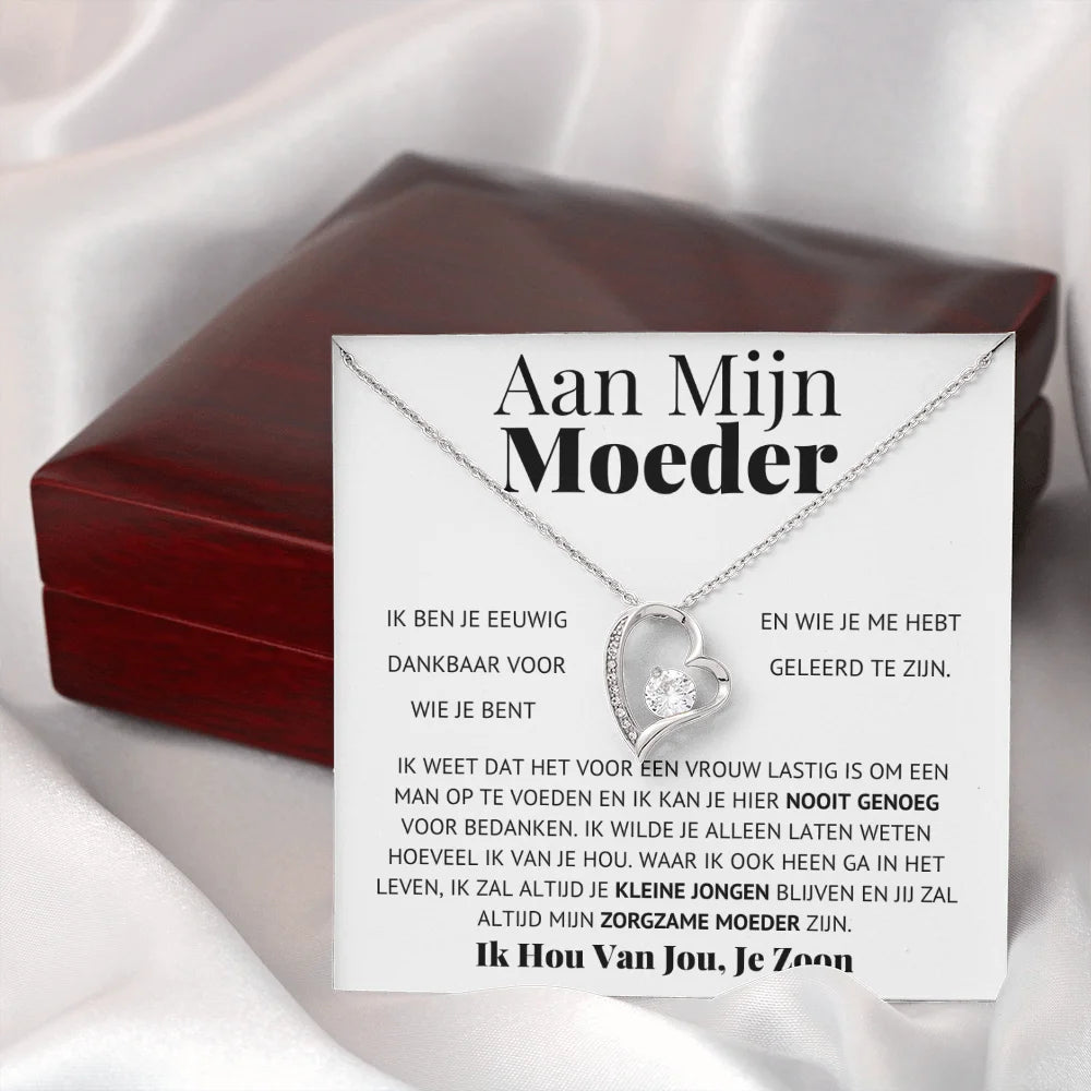 Description:This beautiful heart-shaped necklace is the perfect gift for your mom from her son. Show your love and appreciation on her birthday or Christmas.Features: Heart-shaped necklace for mom from son Ideal gift for birthday or Christmas Unique and sentimental present Dutch language message for a personal touch Express your love...