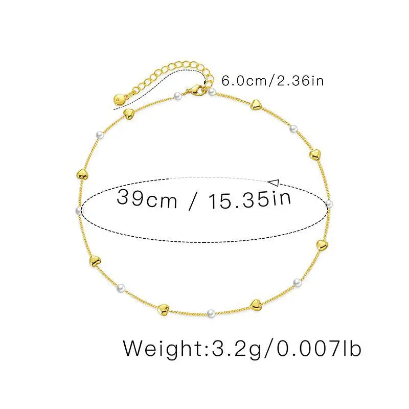 Elegant minimalist link chain necklace with heart beads, made of 18k plated material. High waterproof quality, perfect for women's jewelry accessories.