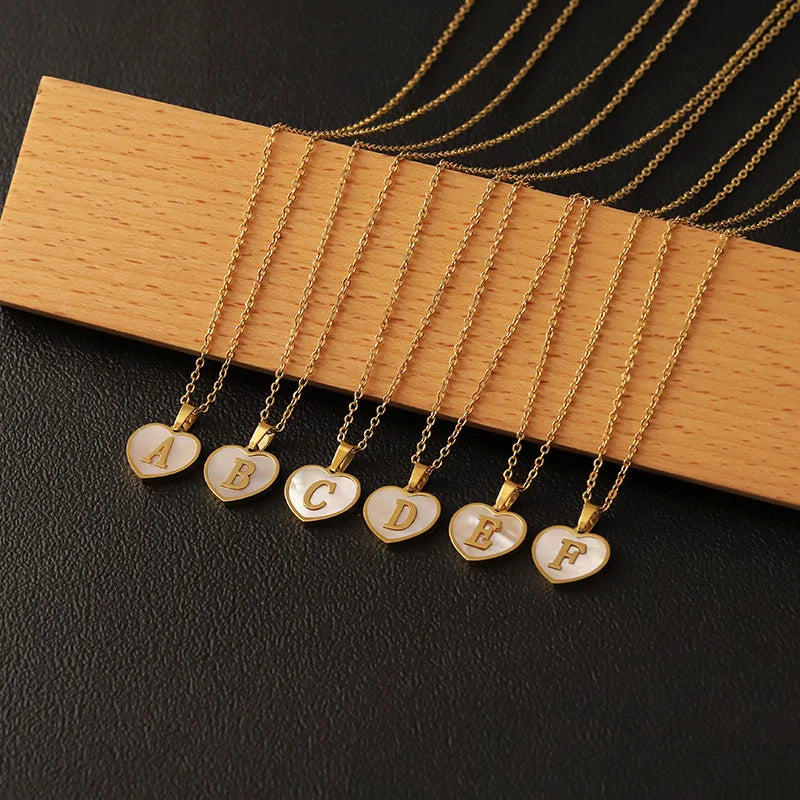 Heart Initial Necklace for Women Plated Shell Pendant Chain Necklaces