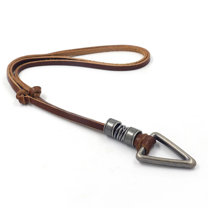 Men's Boho Triangle Pendant Leather Beaded Necklace