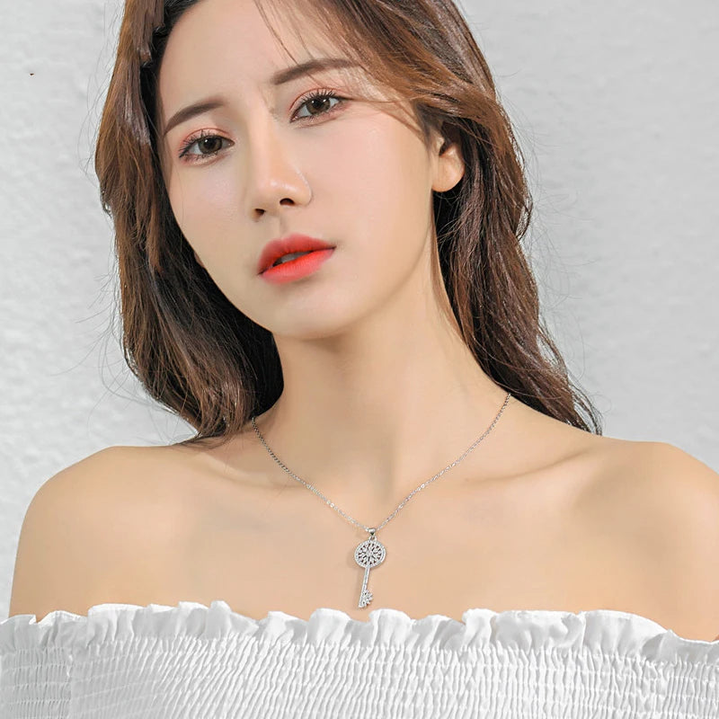 Enhance your style with this stunning Micro Pave Zircon Pendant Key Necklace, a perfect accessory for women and girls. It makes an ideal Christmas gift for your loved ones.