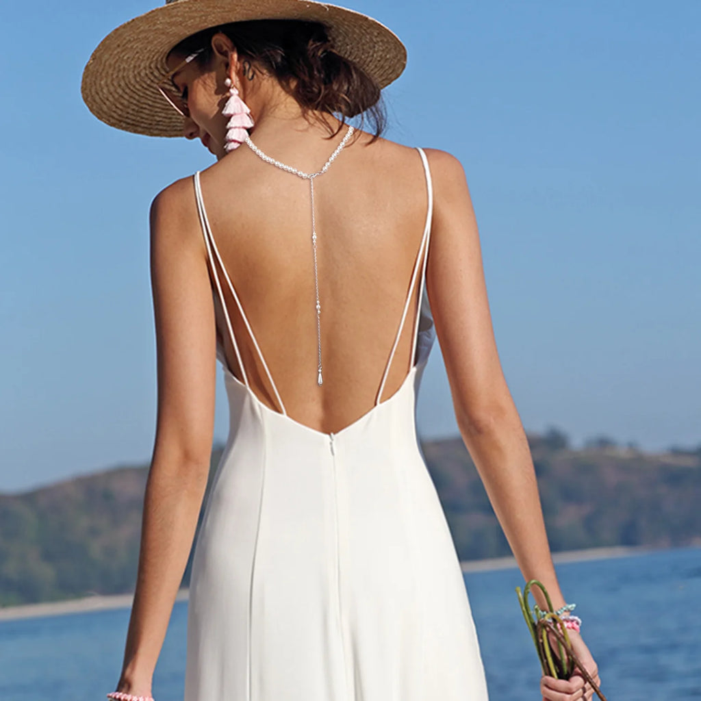 Pearl Pendant Necklace Tassel Back Chain Jewelry