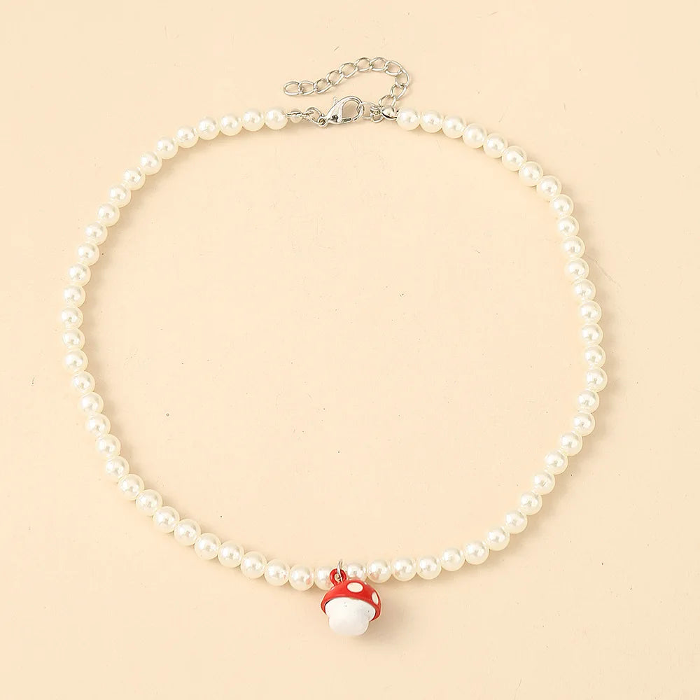 Resin Strawberry Necklace for Women Girls Round Pearl Choker Jewelry