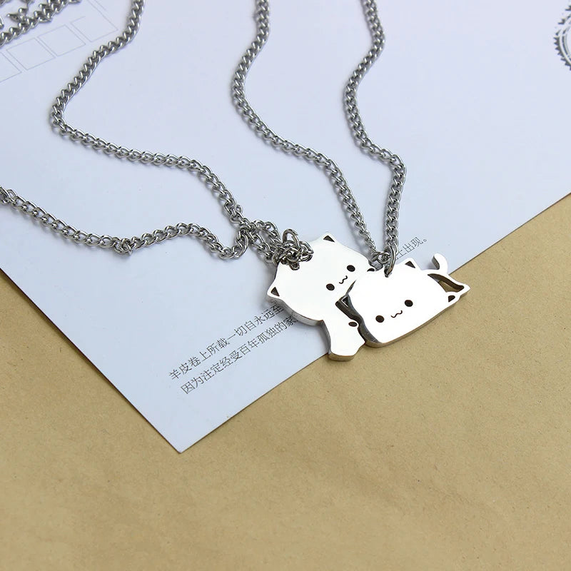 This set includes 2 stainless steel cat necklaces, perfect for couples or friends. Each pendant features a cute cat design, making it a great gift for any cat lover.