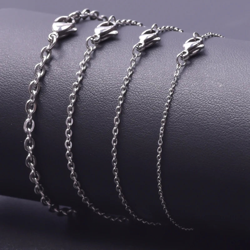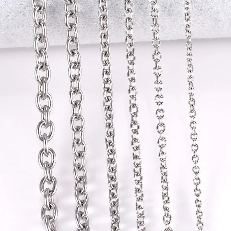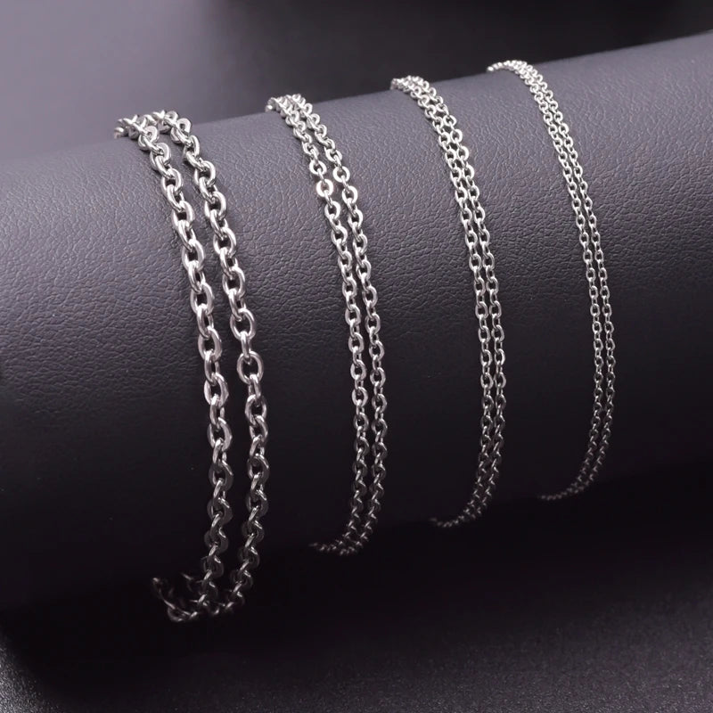 This stainless steel link chain necklace is a versatile accessory for both men and women. It is 40-90cm long, making it suitable for various neck sizes. Perfect for jewelry making or to wear on its own.
