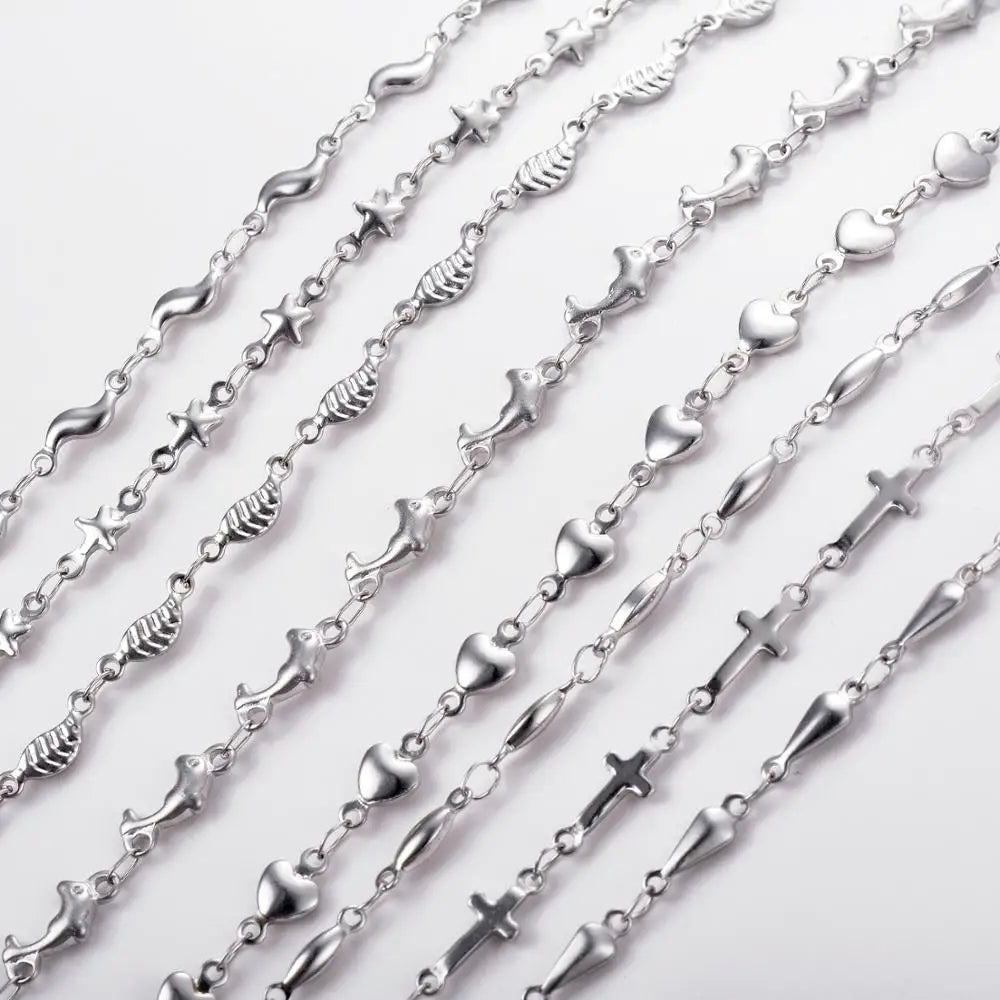 Stainless Steel Long Chain Necklaces For Women Silver Heart Cross Necklace