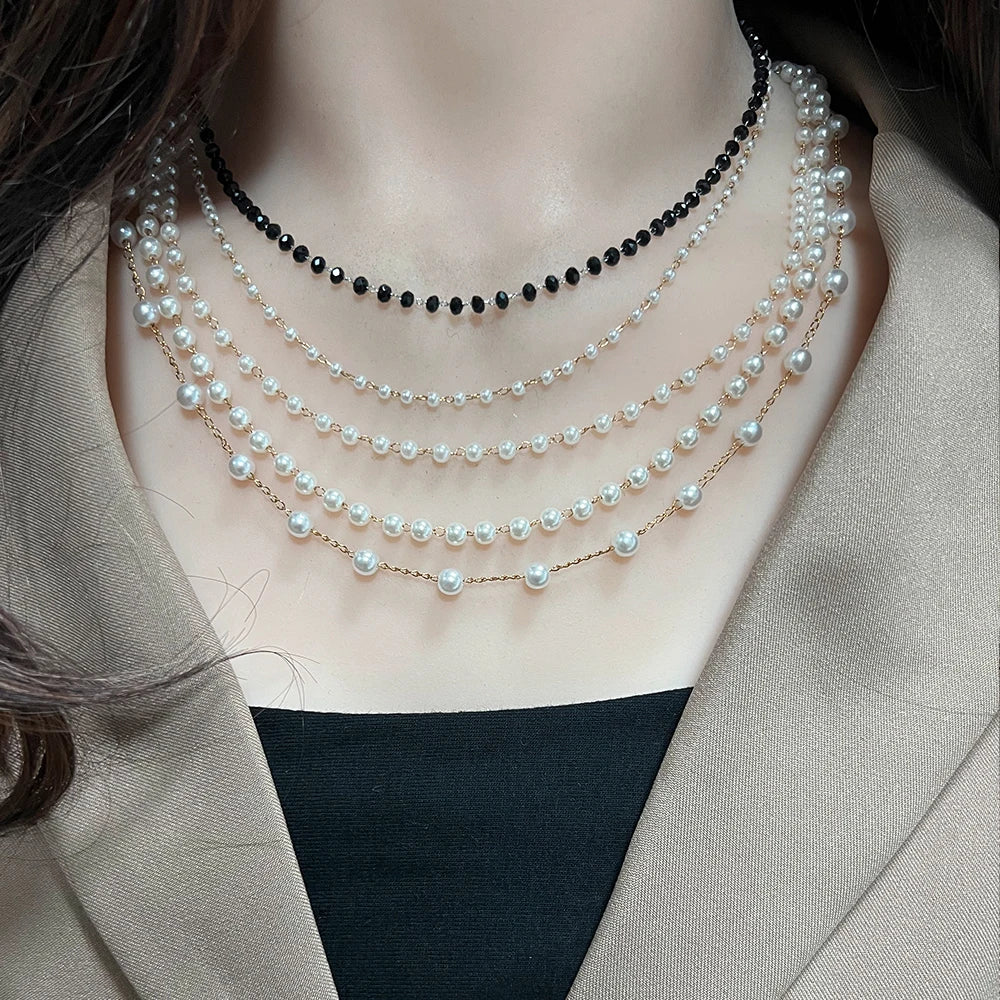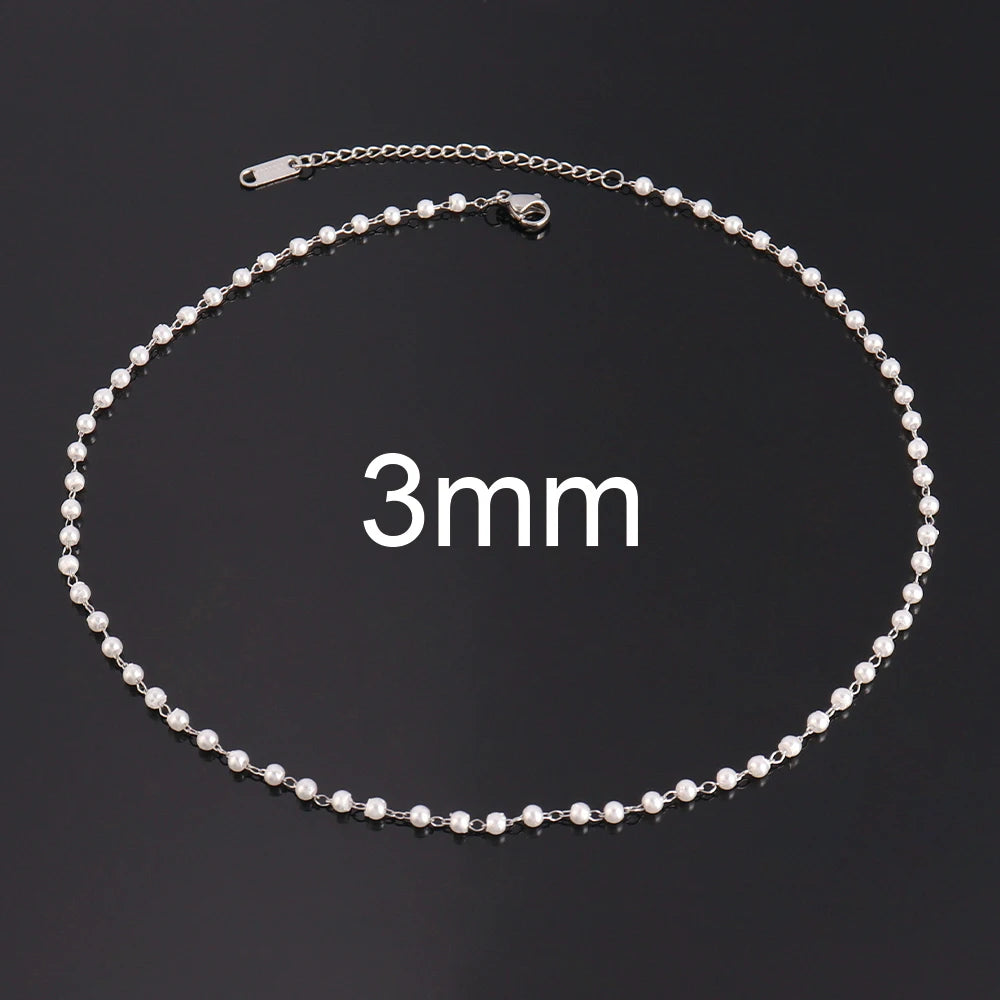 Stainless Steel Women's Choker Necklace Pearl Strand Beads Neck Chain Jewelry