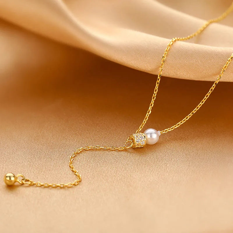 Sterling Silver Pearl Round Necklace Charm Pendant Clavicle Chain