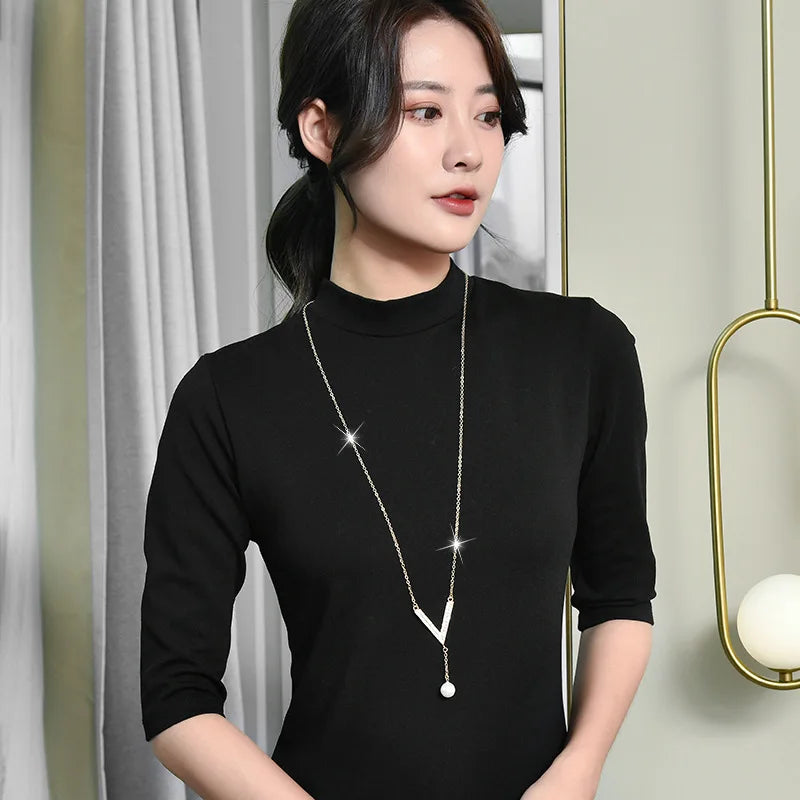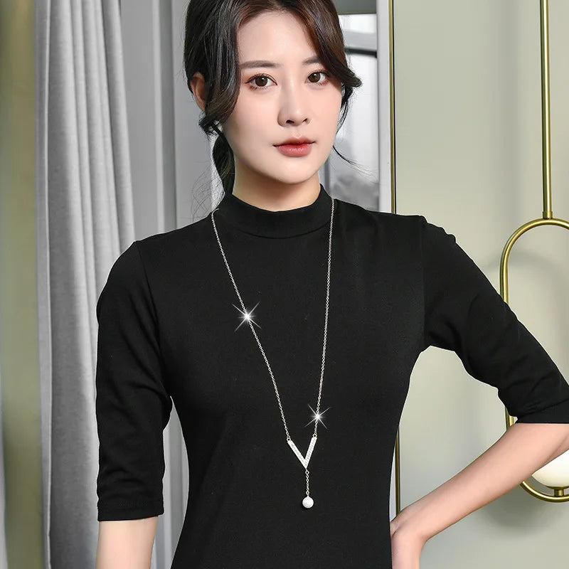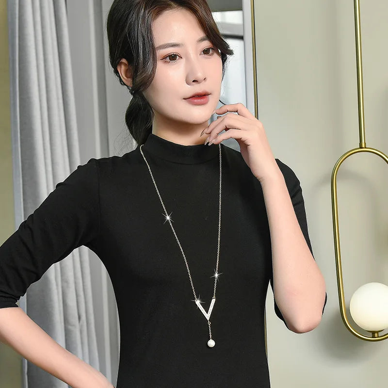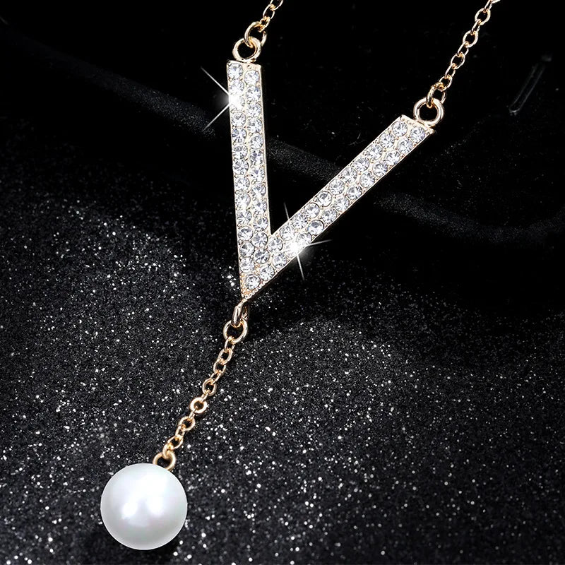 Versatile V Pearl Necklace for Women Crystal Jewelry Bijoux