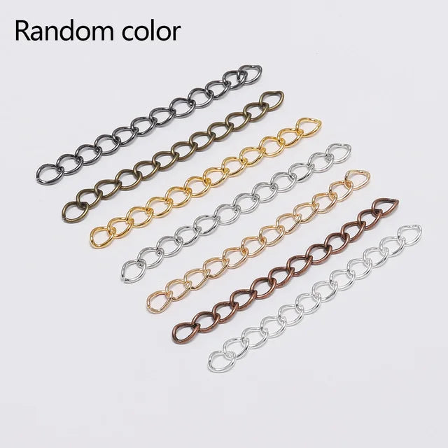 This bulk pack of 100 metal alloy necklace extension chains is perfect for adding length to your necklaces or bracelets. Ideal for jewelry making projects.