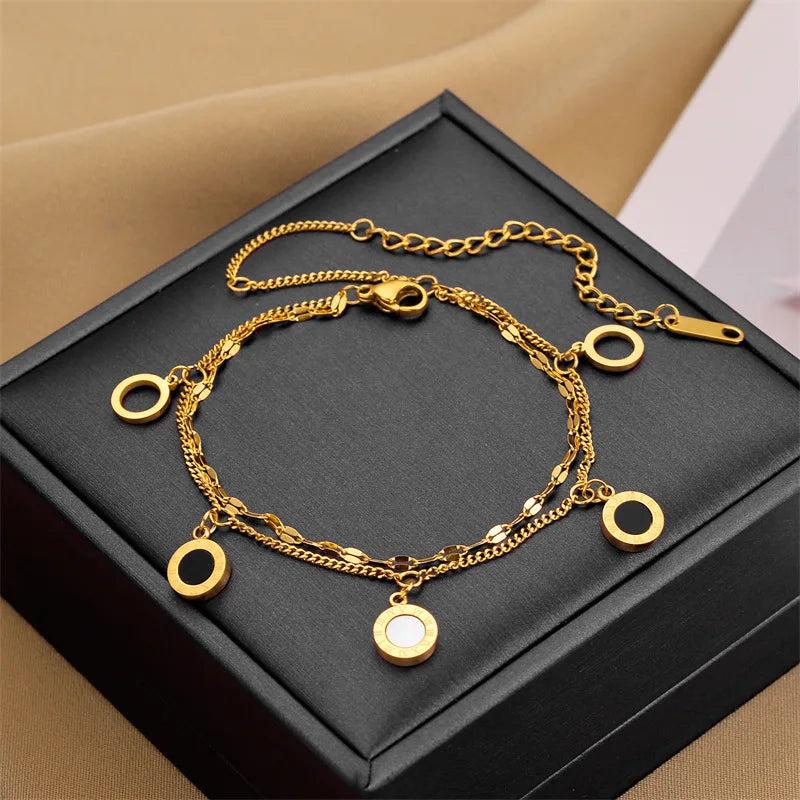 316 Stainless Steel Layered Charm Bracelet Women Girls Wrist Jewelry