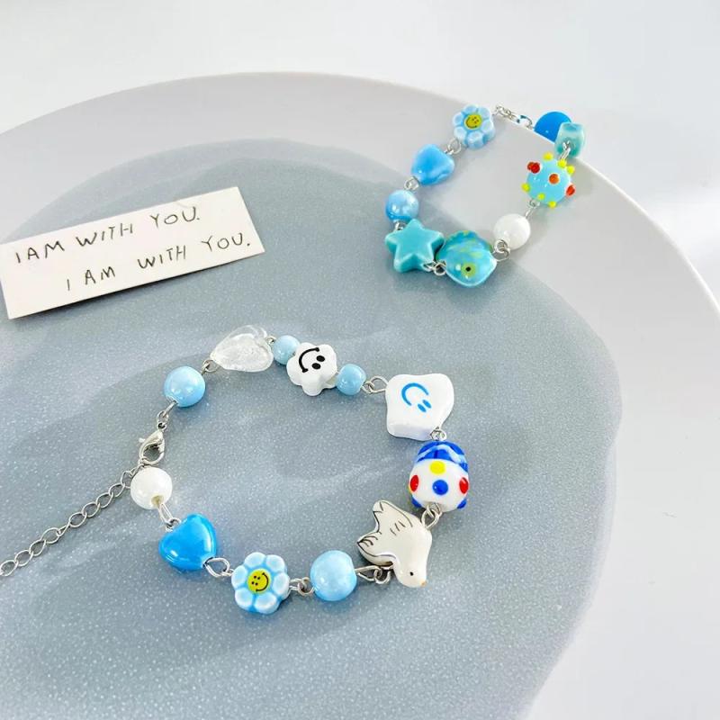 Childlike Fruit Butterfly Love Ceramic Bracelet Girls Bohemia Cartoon Animal Bea