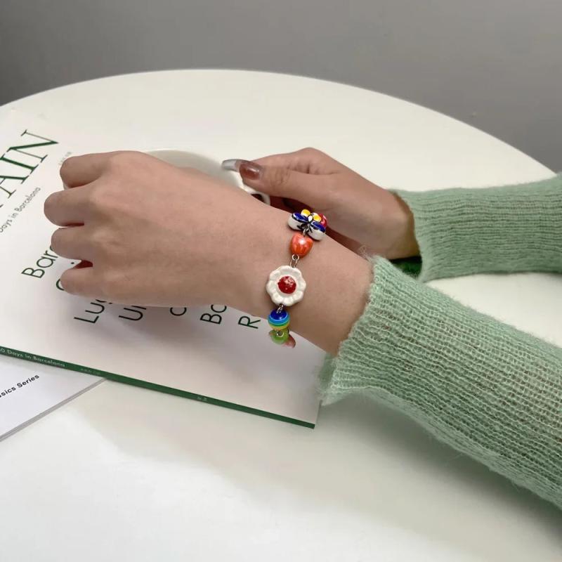 Adorable and colorful ceramic bracelet featuring childlike fruit, butterfly, and love design. Perfect for girls with a bohemia style.