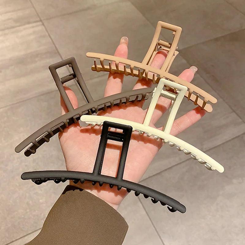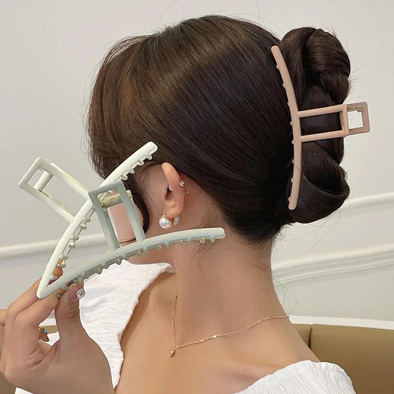Elevate your hairstyle with this oversized metal hair claw. The large hollow design adds a modern touch to your look. Perfect for securing thick or long hair in place.