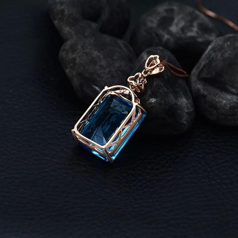 14K Rose Sapphire Pendant Necklace for Women Gemstone Topaz Jewelry