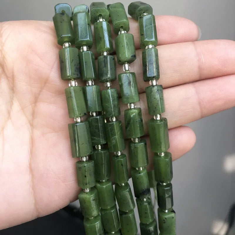 Genuine Canada Jades stone beads in cylinder shape, perfect for DIY jewelry making. Add charm to bracelets and accessories.
