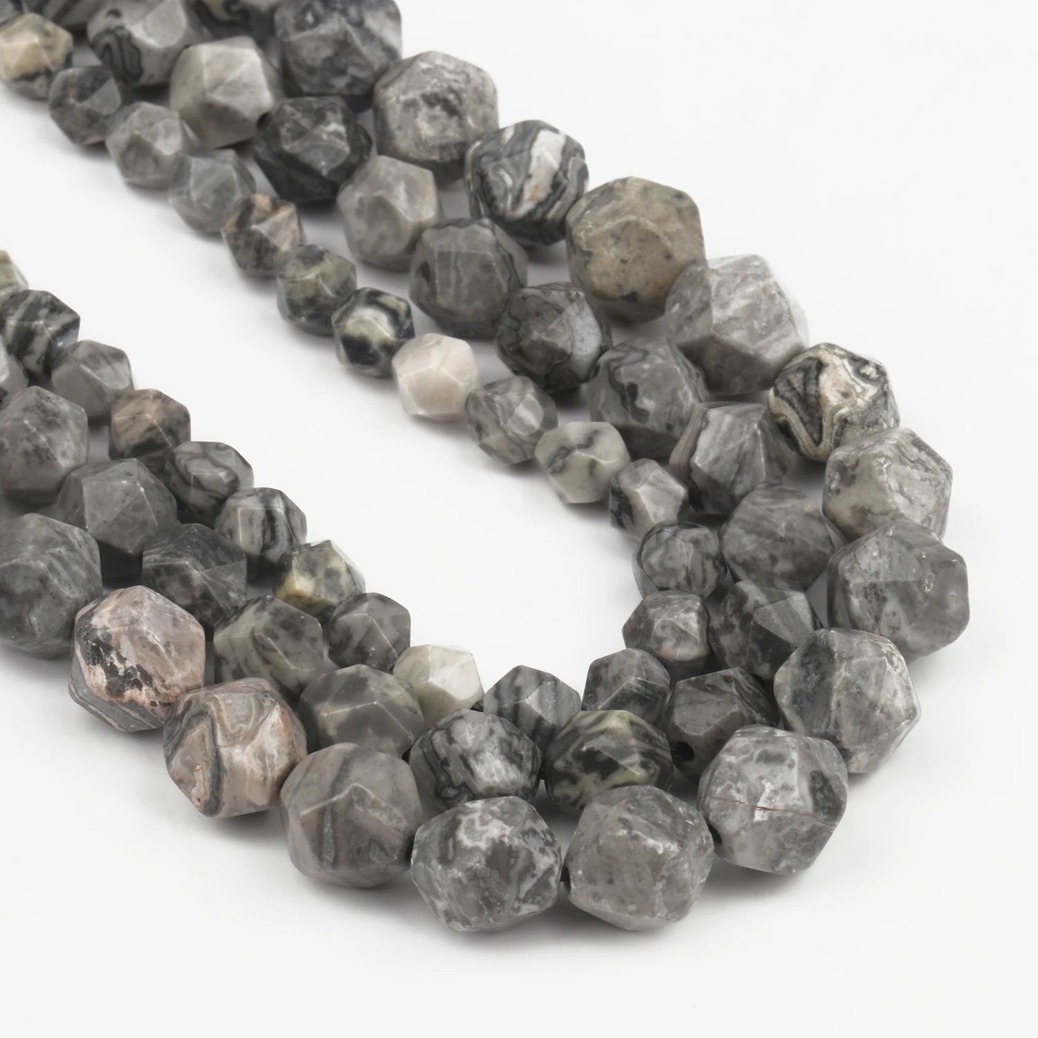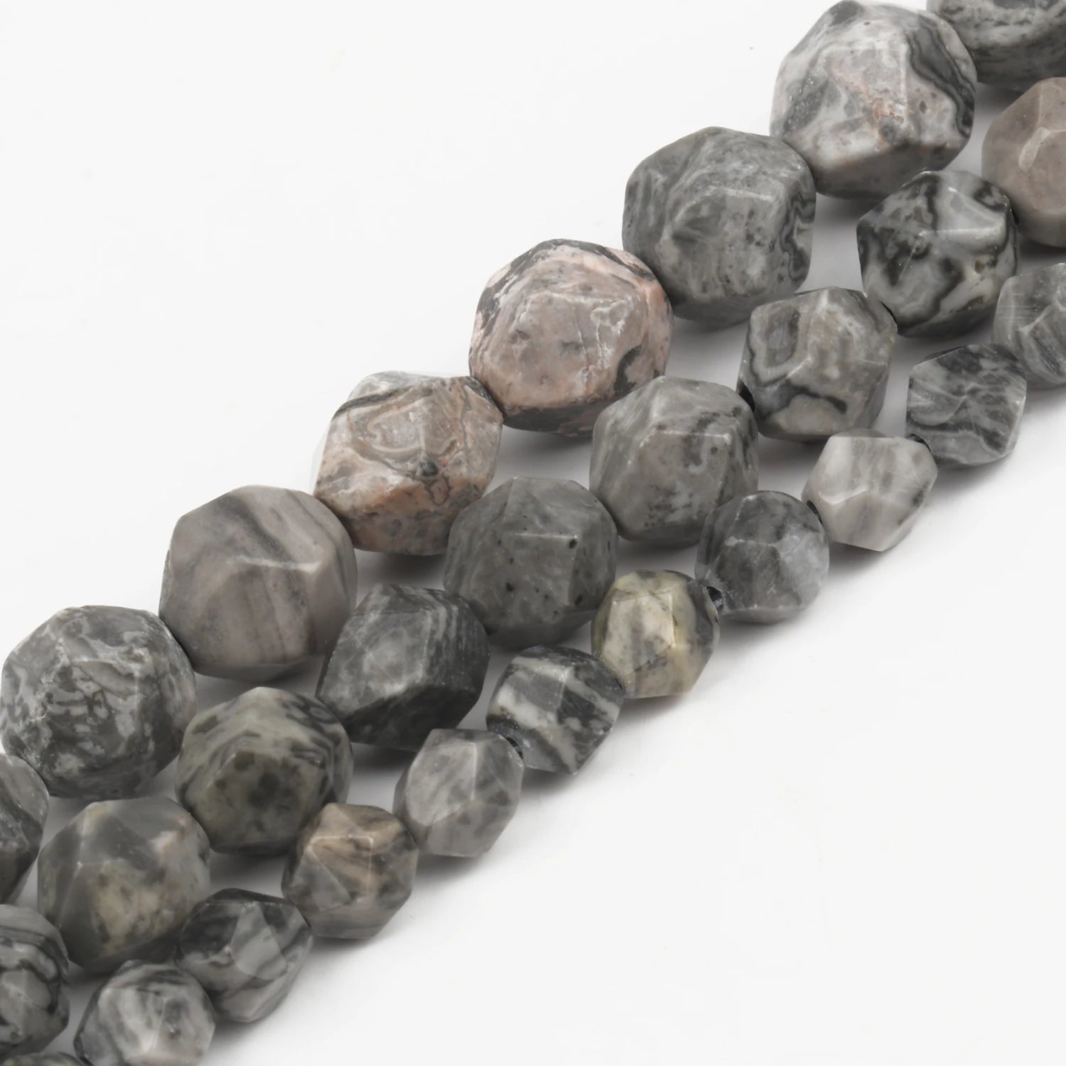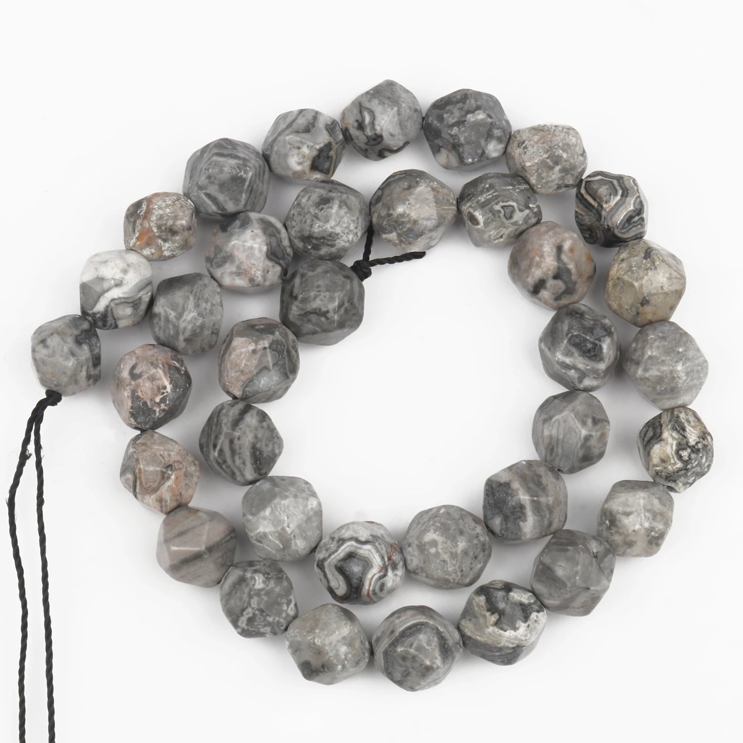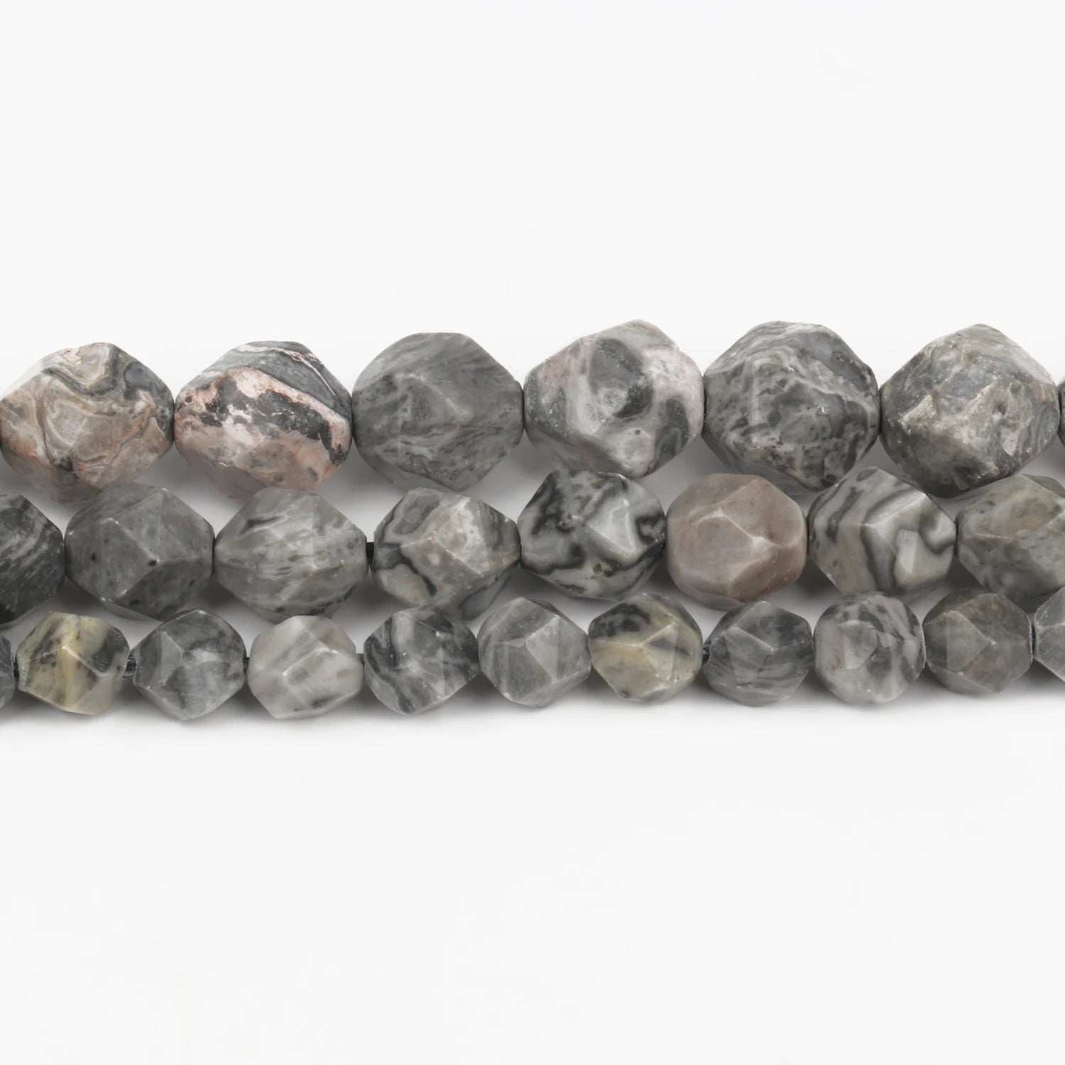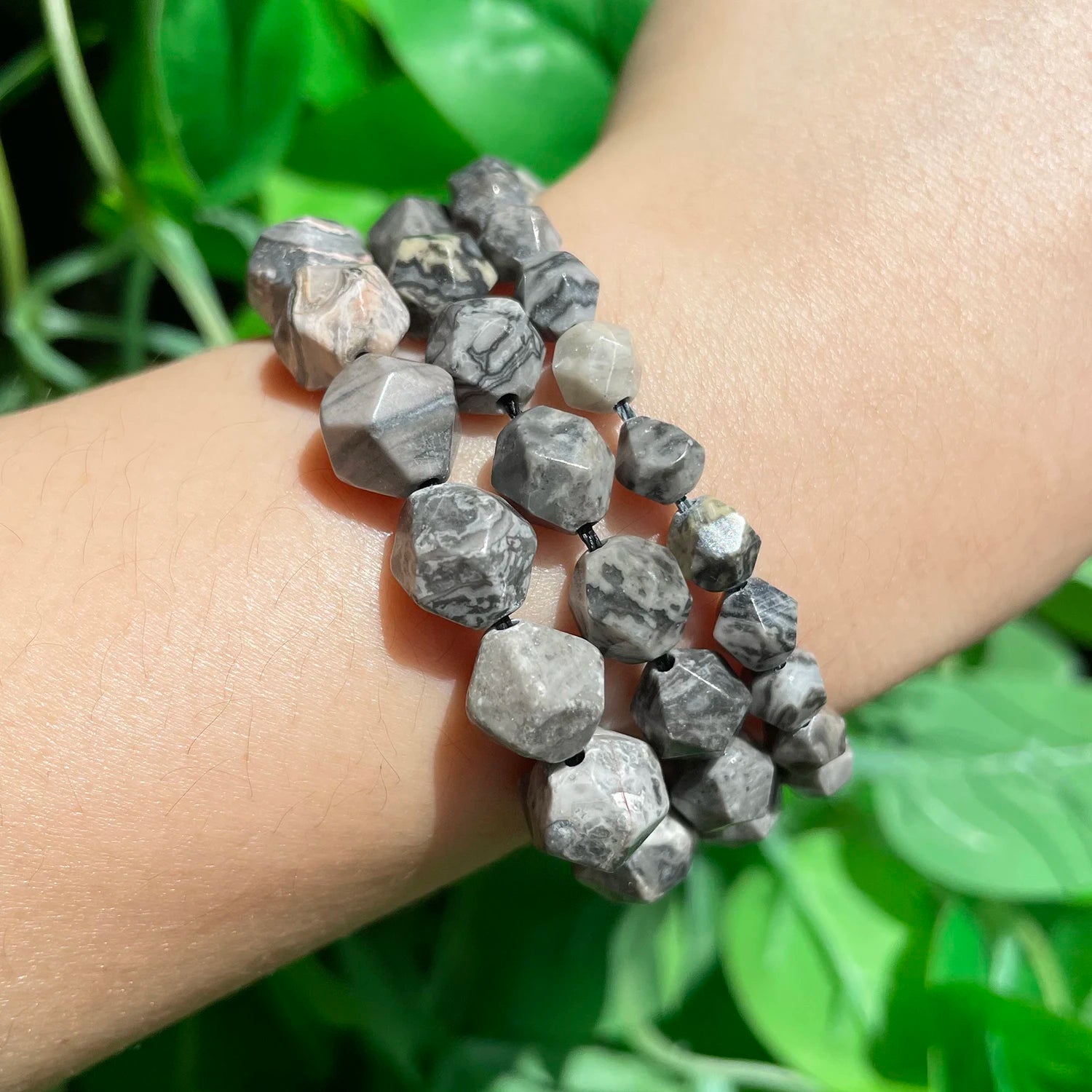 Natural faceted map jaspers stone beads in round shape. Perfect for jewelry making such as DIY bracelets. Each strand is 15 inches long.