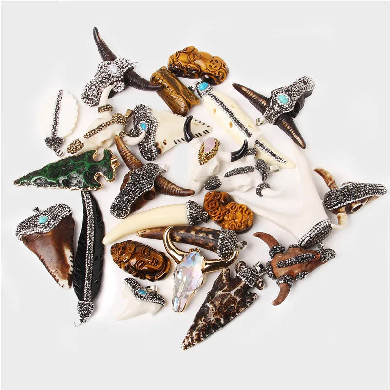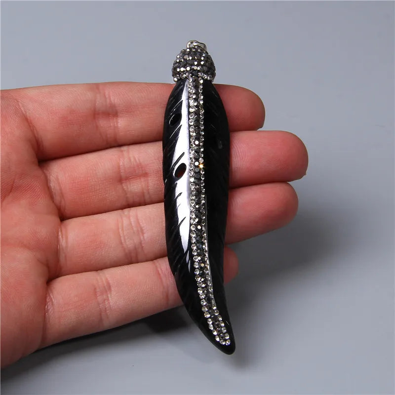Add a touch of punk style to your jewelry with this stained bull bone pendant featuring a feather and arrow shape. Perfect for making unique necklaces.