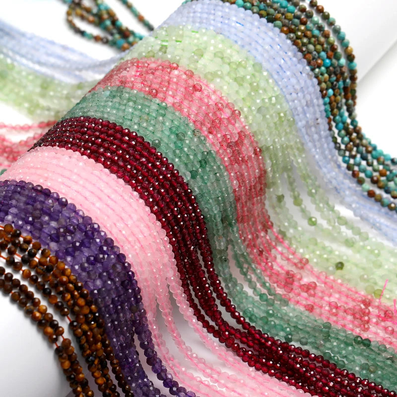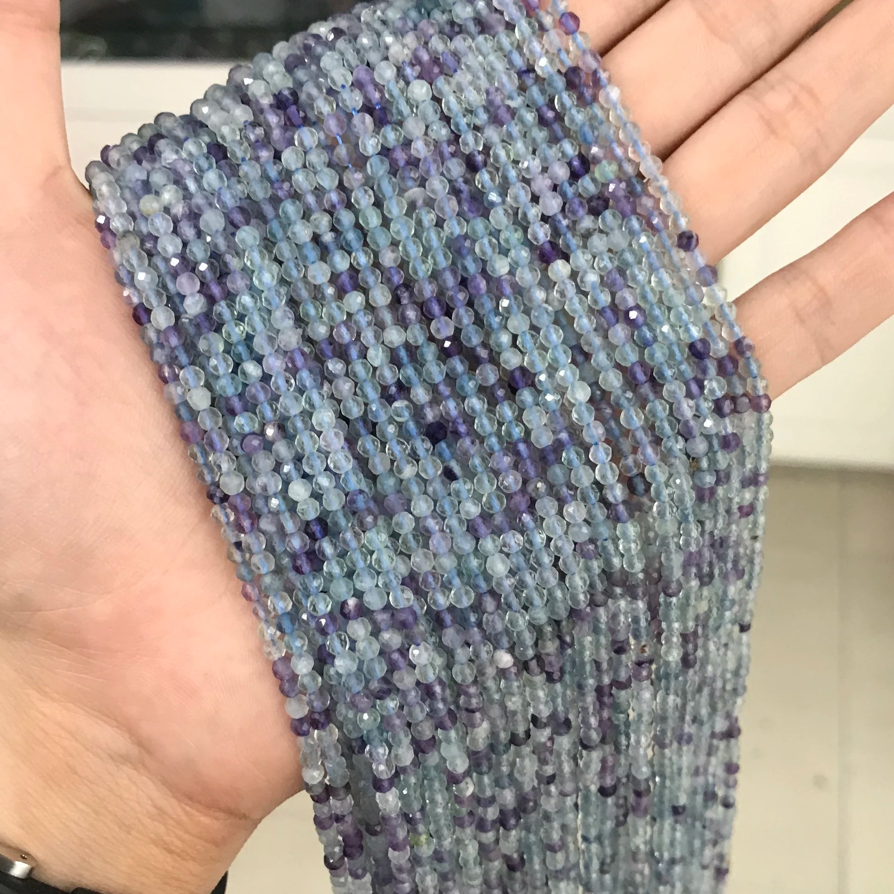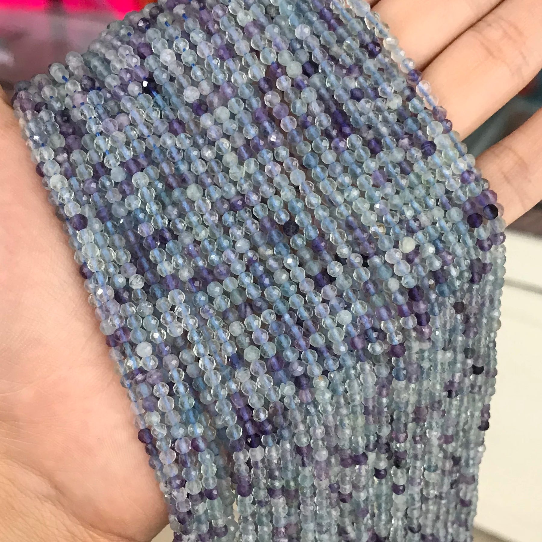 Explore the beauty of natural stone with these 2.5mm faceted green purple fluorite seed beads. Perfect for jewelry making projects.