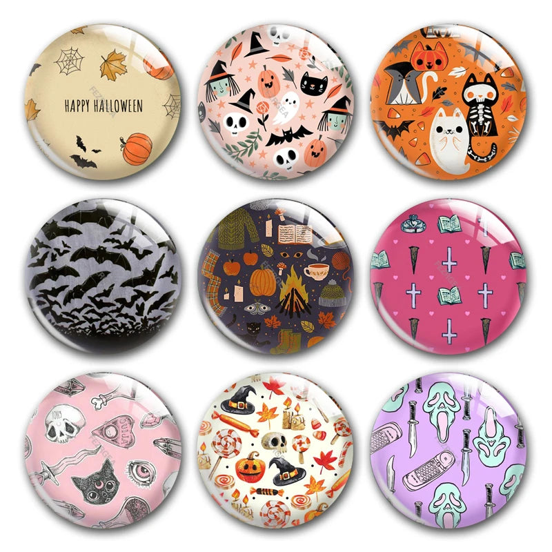 • Round glass cabochons with Halloween theme