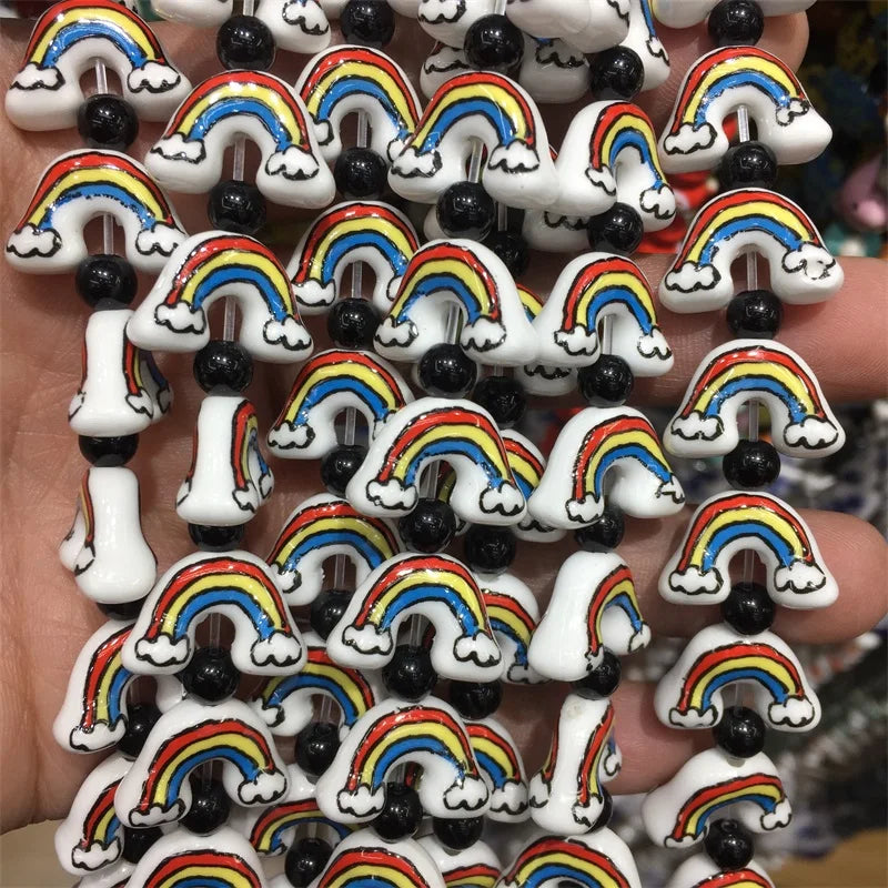 Hand Painted Rainbow Ceramic Pendant Porcelain Beads For Jewelry Making