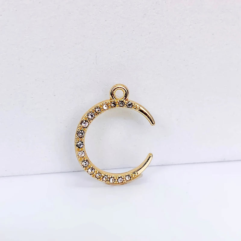 Elegant and shimmering KC plated moon eardrop pendants with rhinestones. Perfect for creating stunning jewelry pieces.