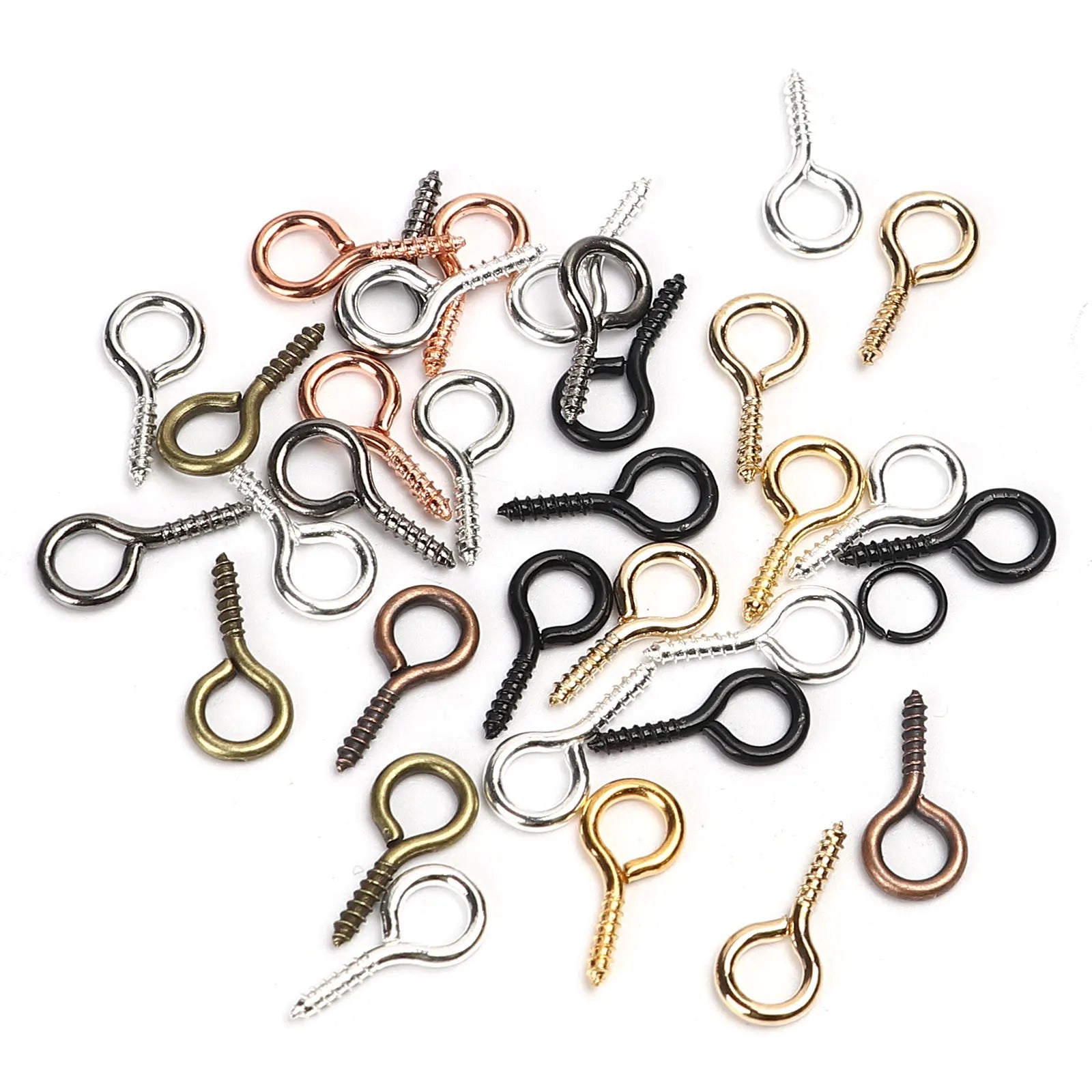 Get this set of 200 large screw eyes bails for your DIY jewelry making projects. Made of iron based alloy, these top drilled findings are perfect for adding a unique touch to your creations.
