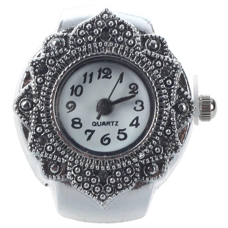 Add a touch of elegance to your outfit with this Tibetan silver flower finger ring watch. It features a beautiful design with intricate details that will complement any style.