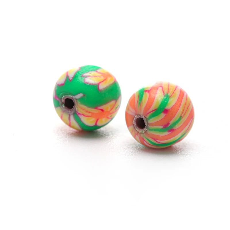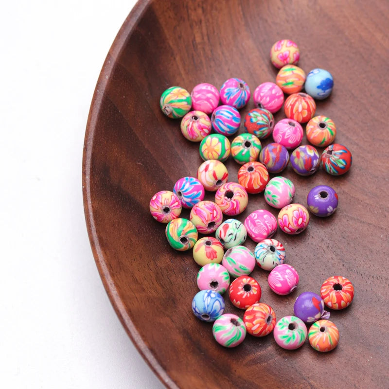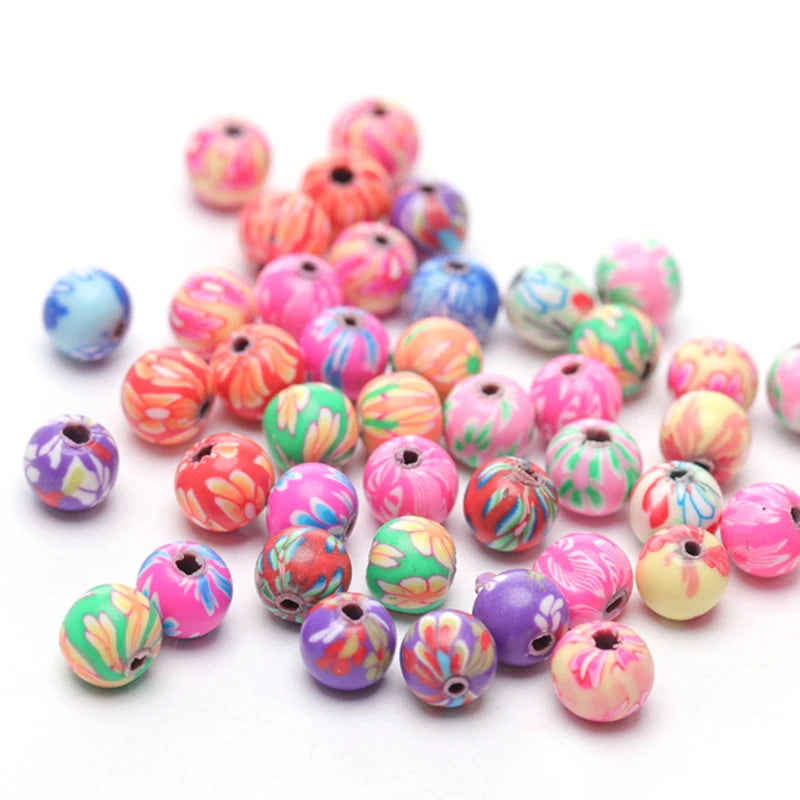 Get a pack of 100 round polymer clay flower pattern printing beads in mixed colors. Ideal for jewelry making and DIY bracelet projects.