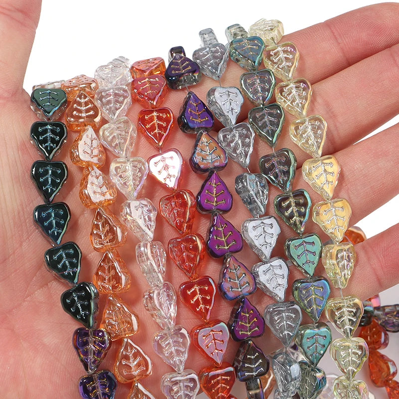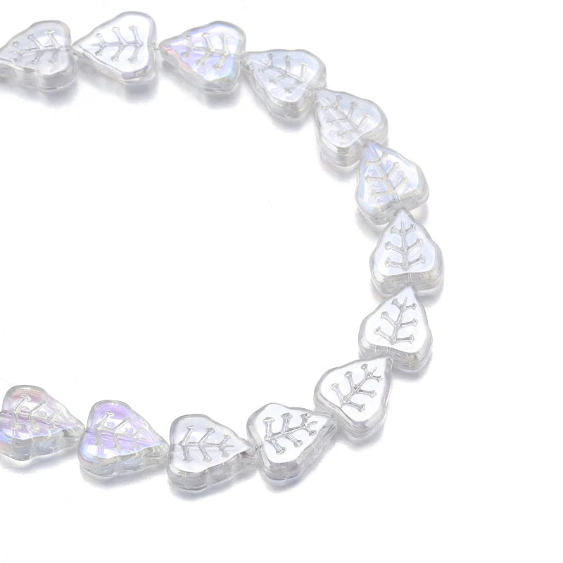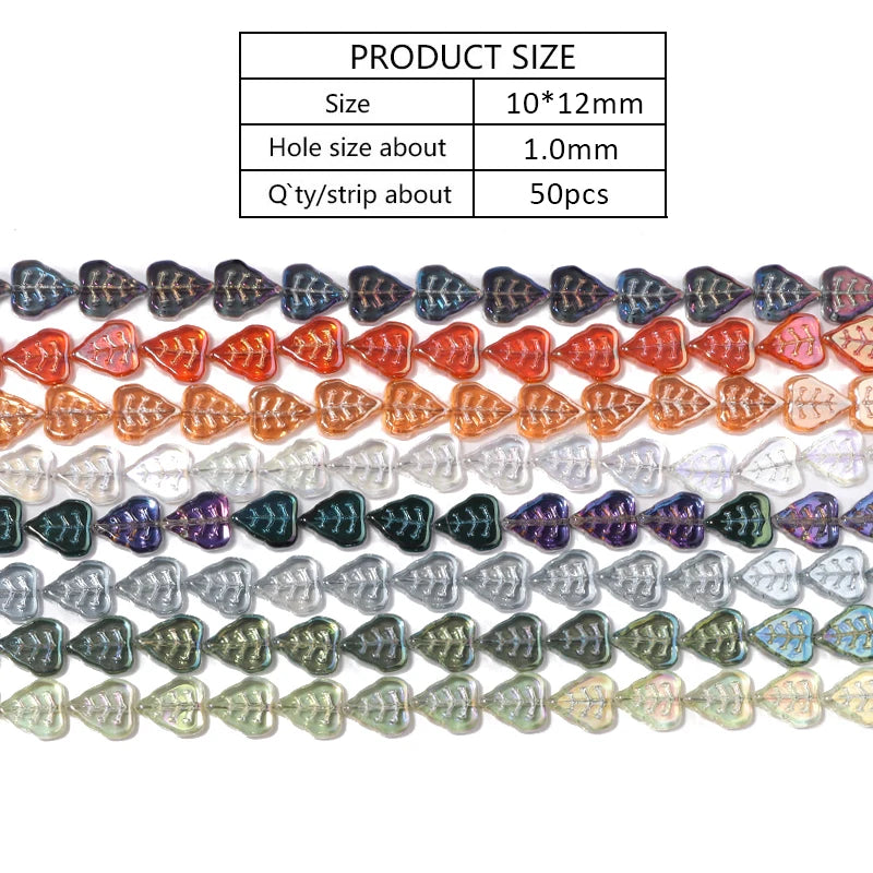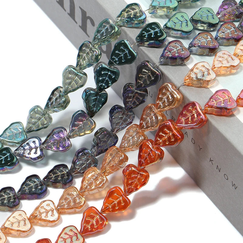These beautiful electroplated glass beads are perfect for creating unique jewelry pieces. Each bead features a stunning leaf design and measures 10*12mm. Add a touch of elegance to your DIY projects with these crystal beads.