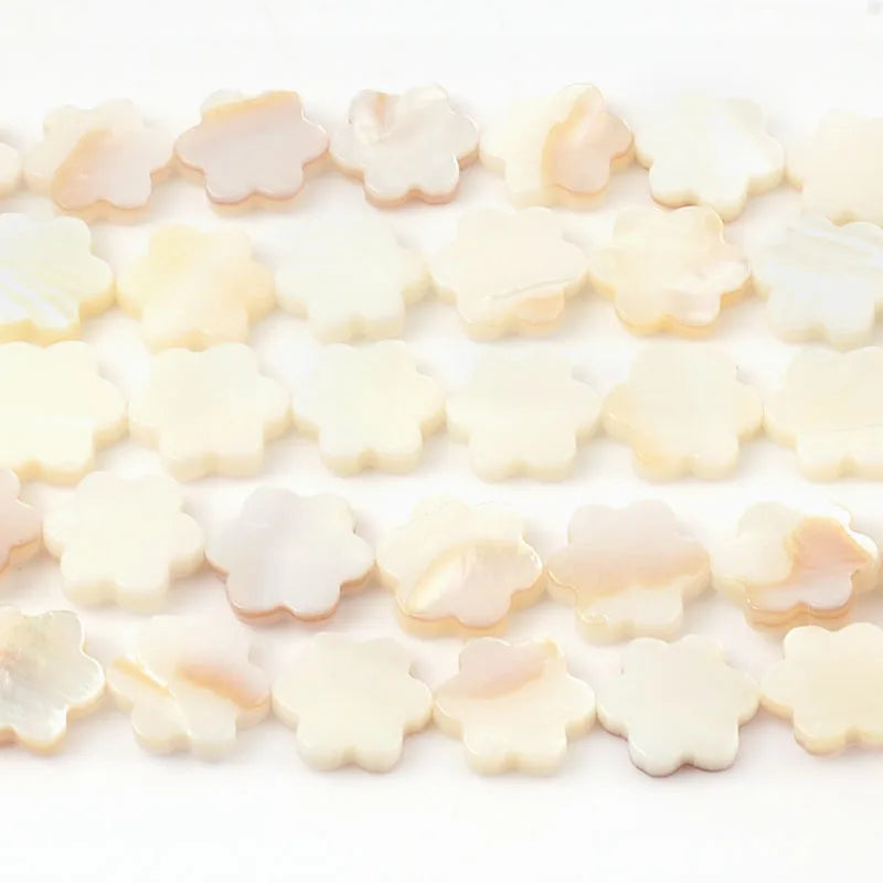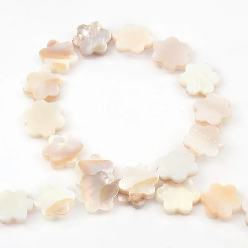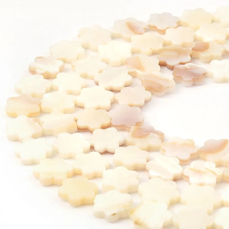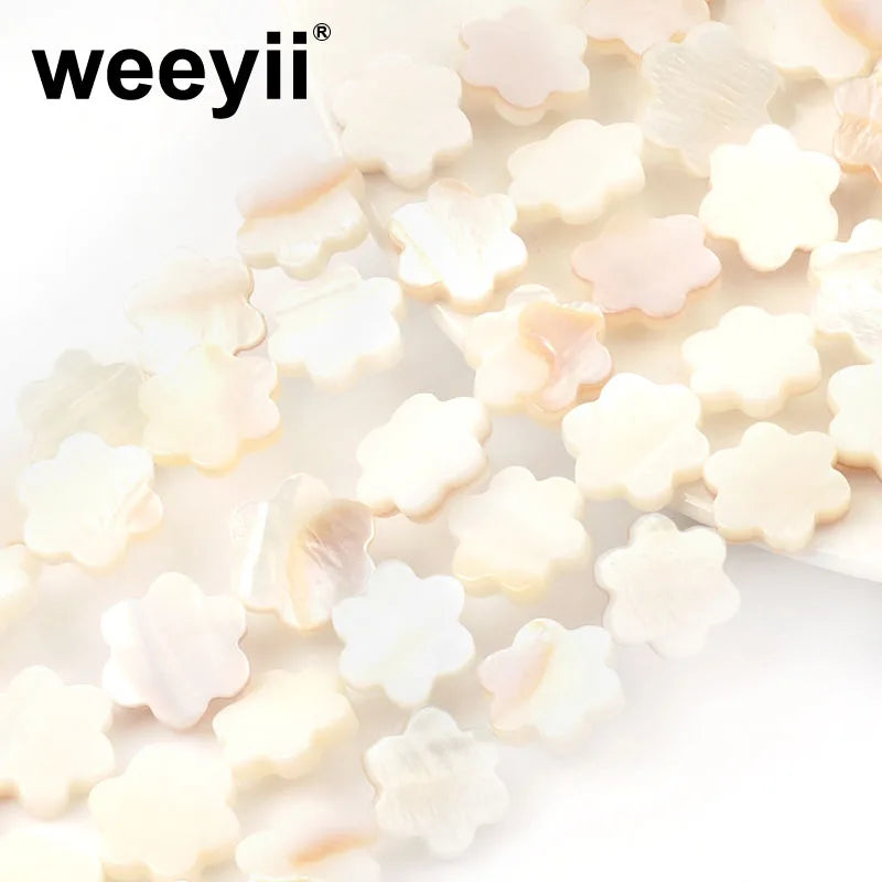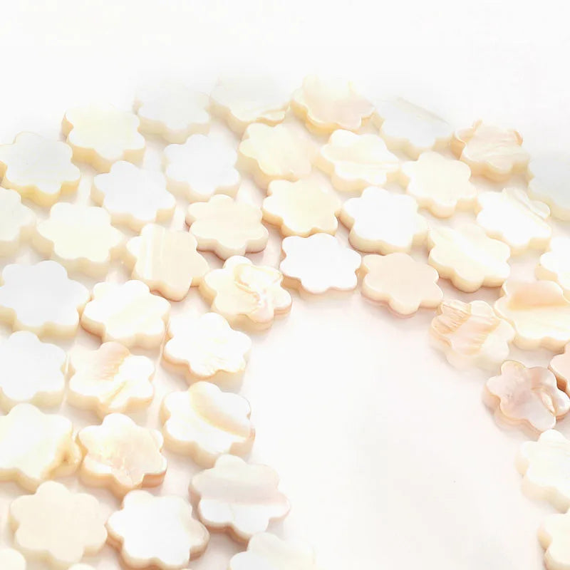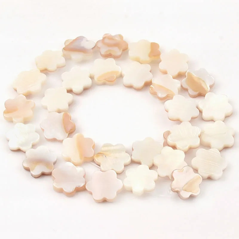 These 12mm natural flat shell beads feature a six petal flower design, ideal for jewelry making, DIY crafts, bracelets, and necklaces.