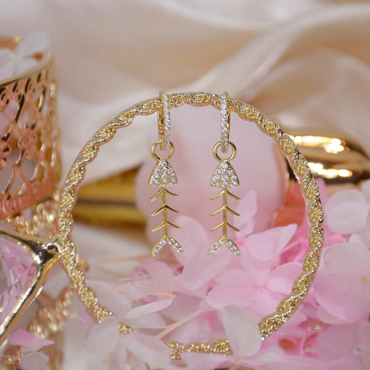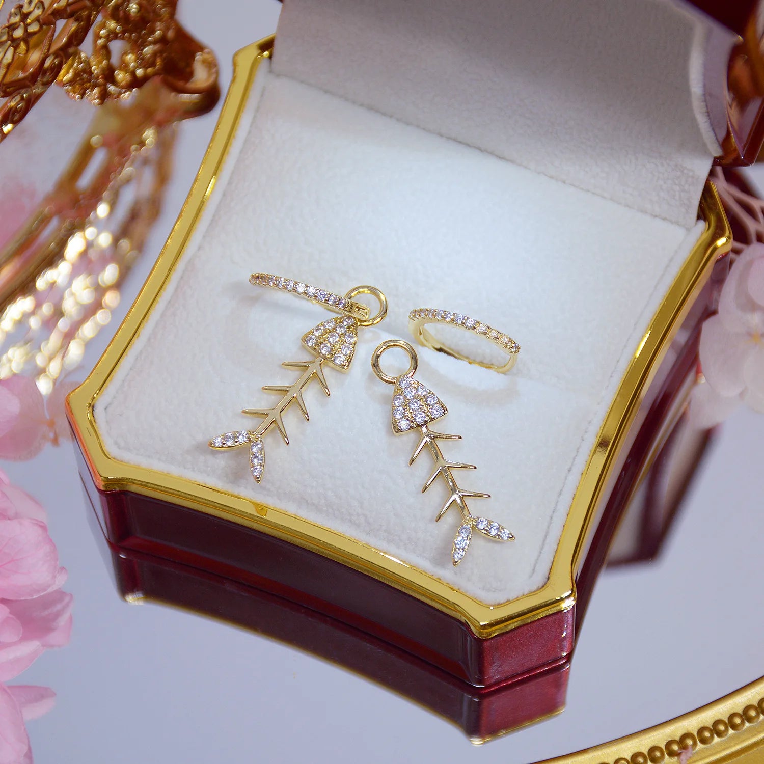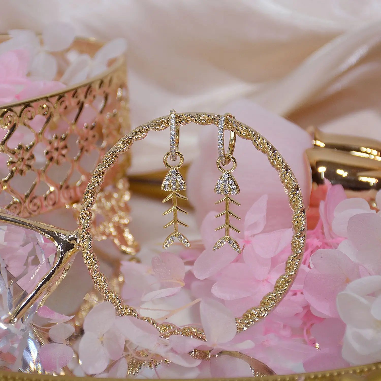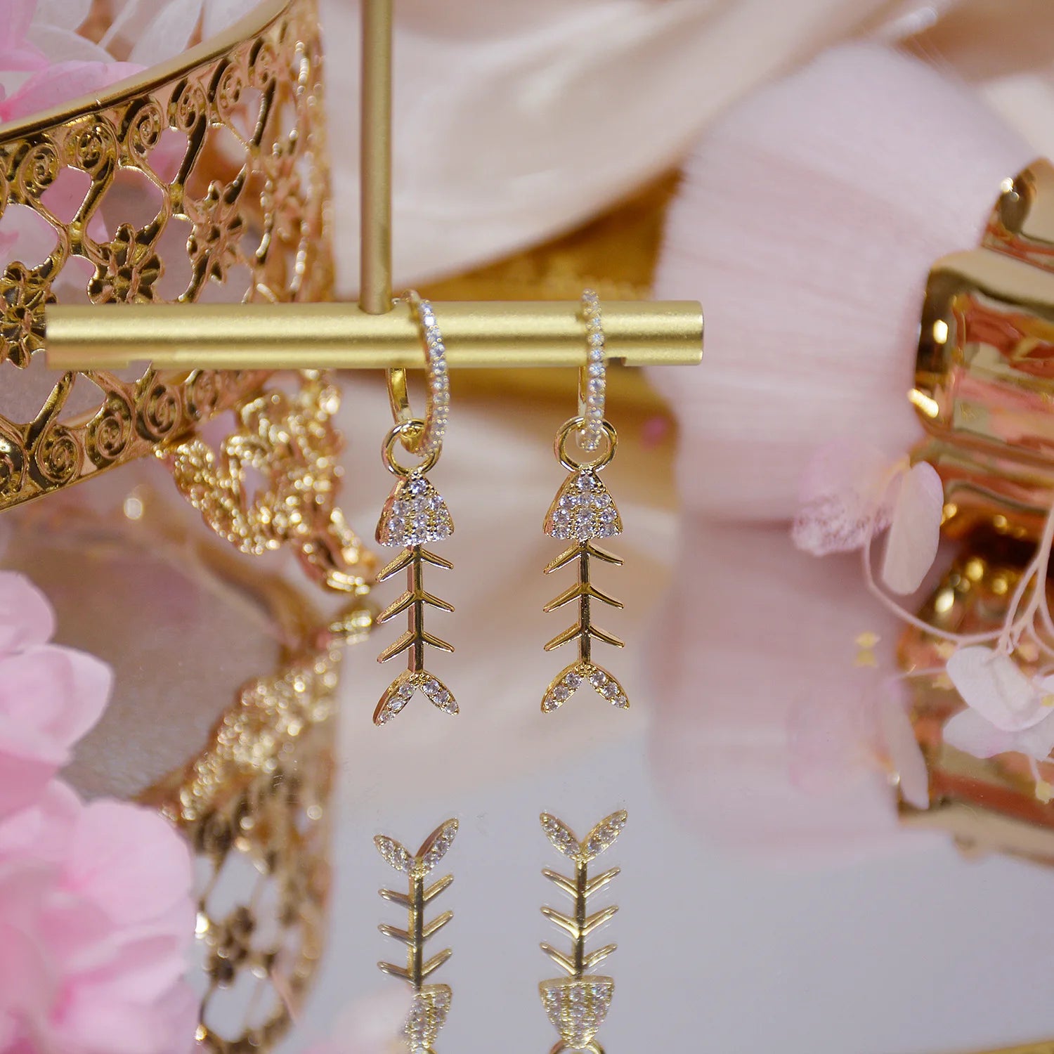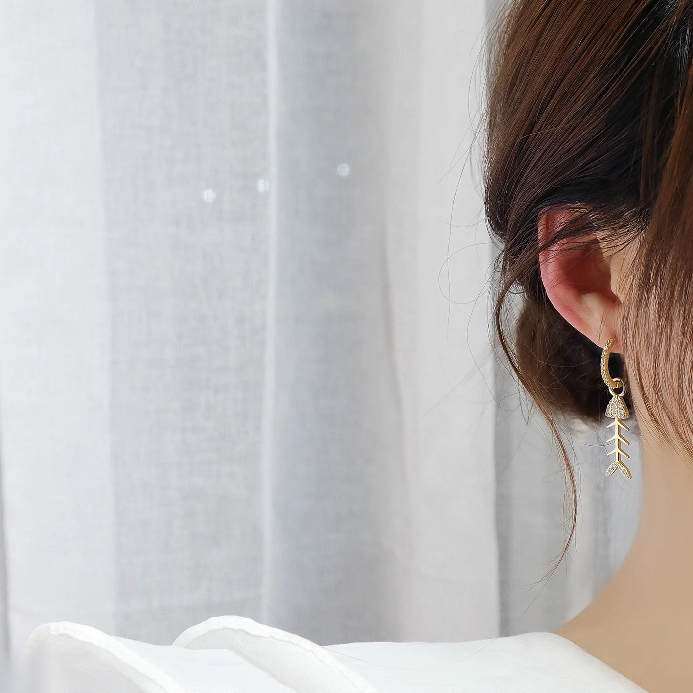 Enhance your style with these dazzling 14k flash cubic zirconia fish bone ear buckle earrings. Perfect for any occasion.
