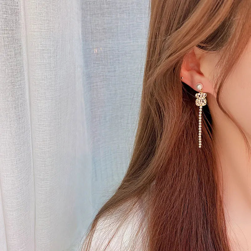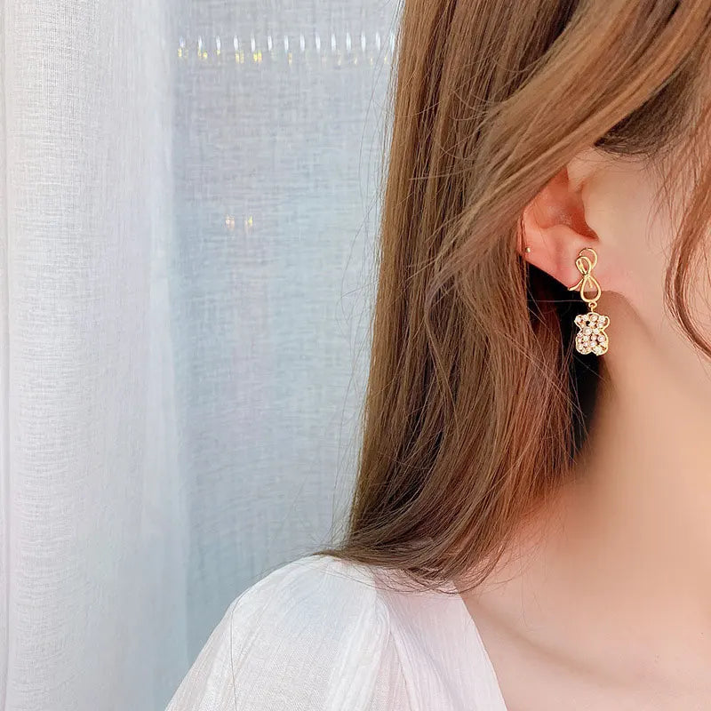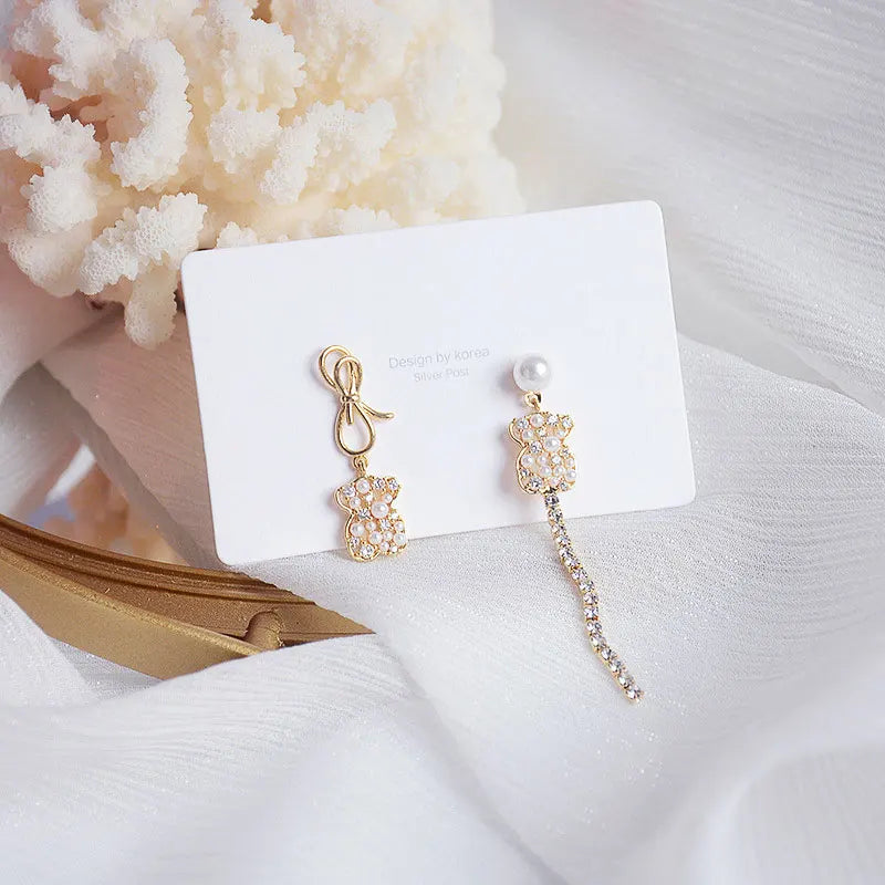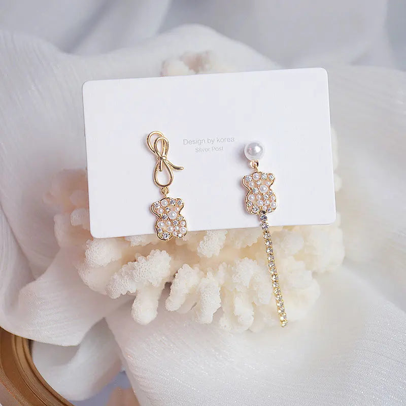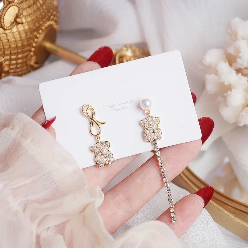 Add a touch of elegance to your look with these minimalist asymmetrical earrings, featuring zircon bear accents. Perfect for women who love unique jewelry pieces.