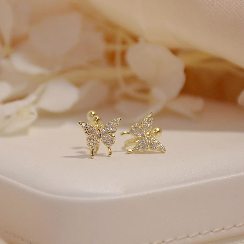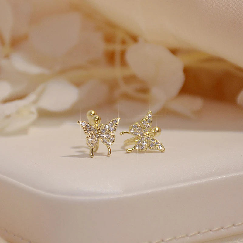Elevate your style with these stunning 14k real micro-inlaid zircon butterfly earrings. The intricate design features tiny bling CZ stones that shimmer in the light.