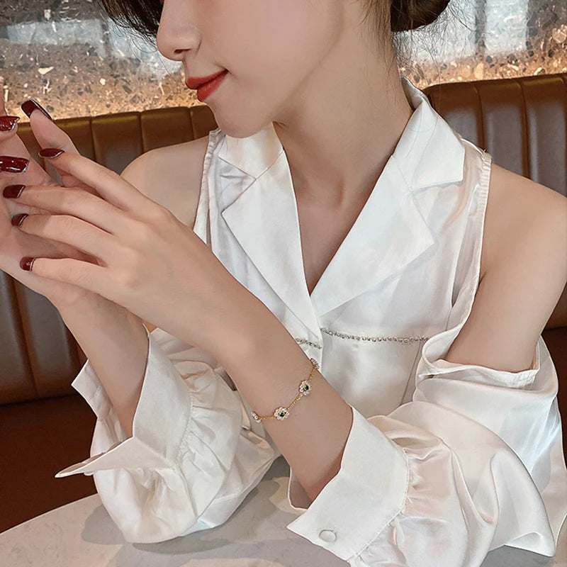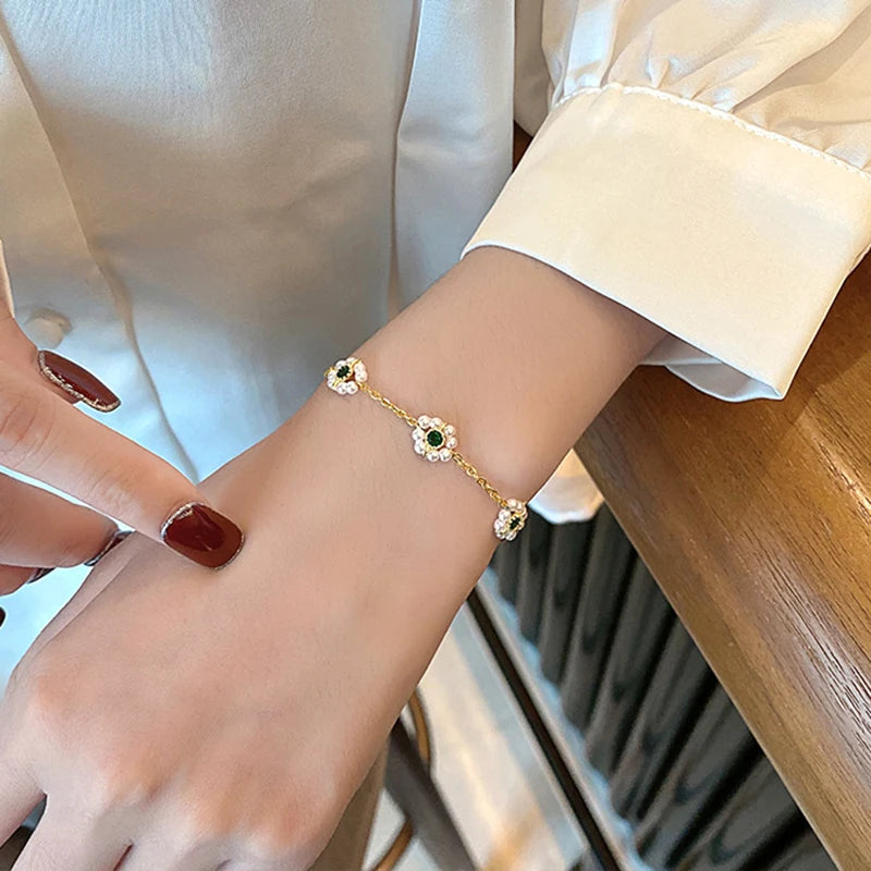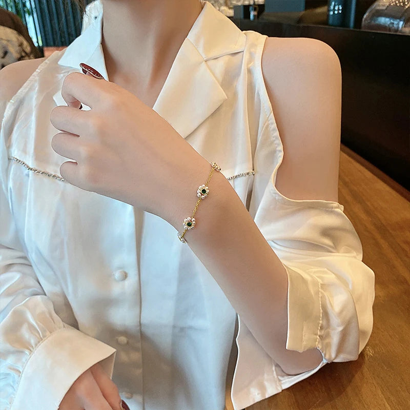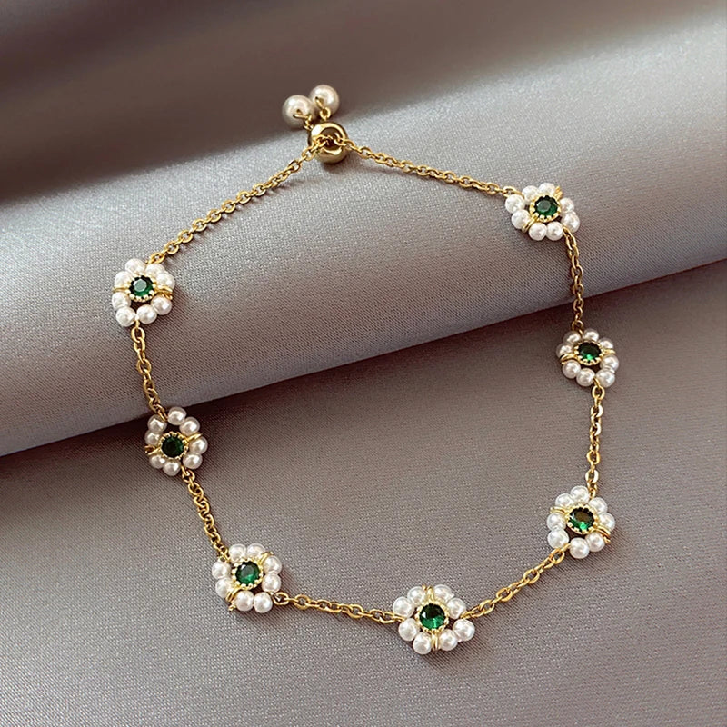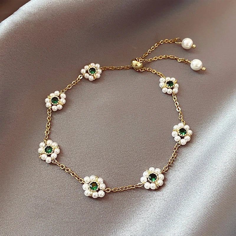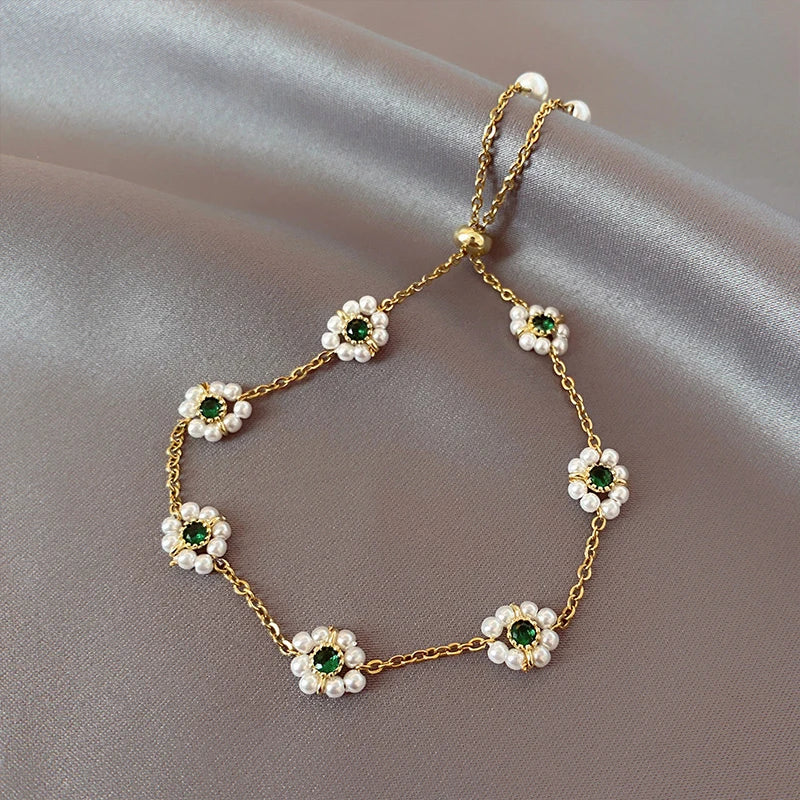 This stunning bracelet features real emeralds and pearls in a beautiful flower design. Perfect for weddings, birthdays, parties, or as a special gift.