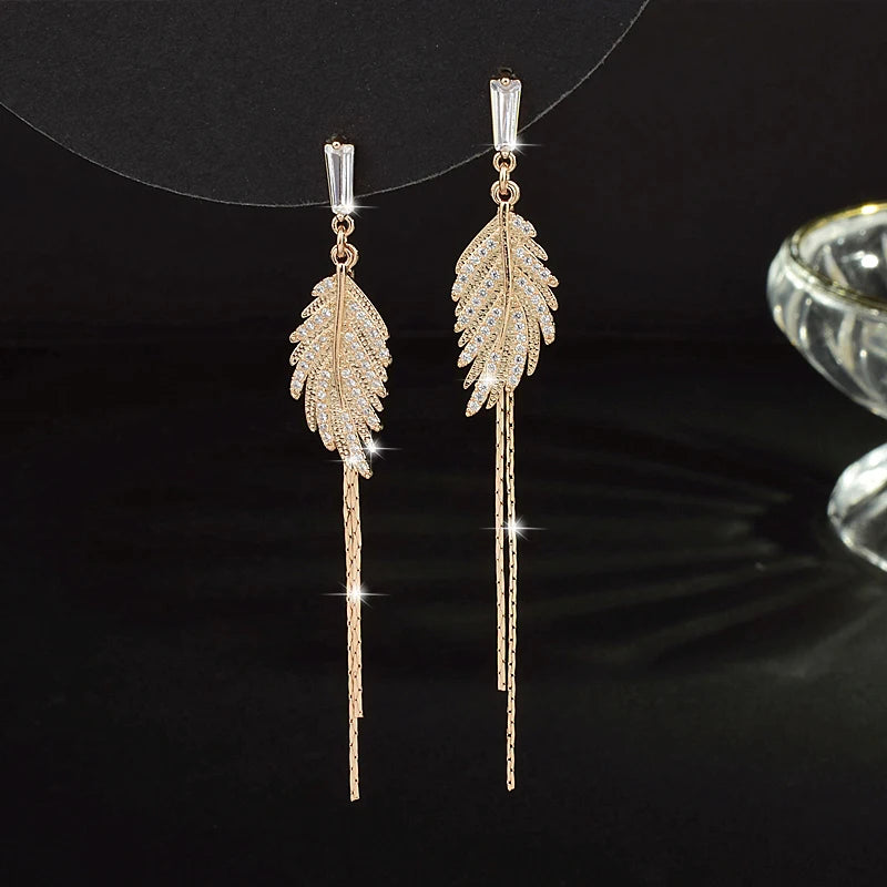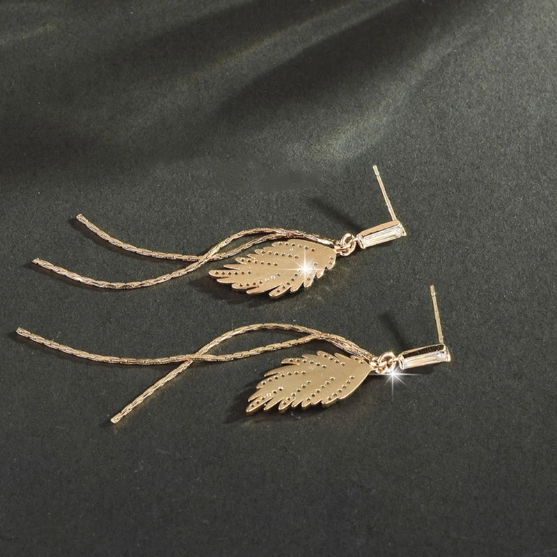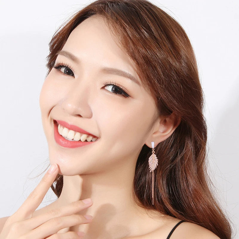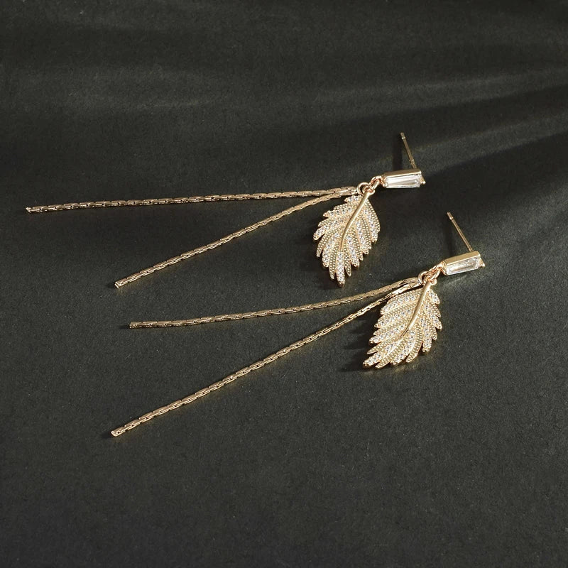 Elegant and charming earrings featuring real leaves design with zirconia stud. Made from 14K gold with S925 silver needle.