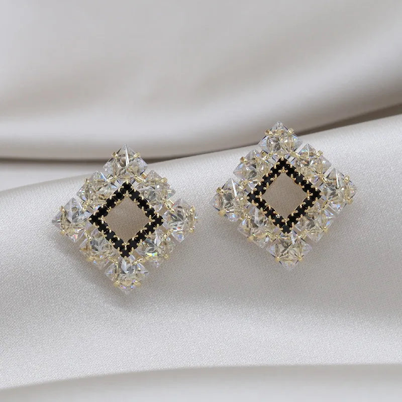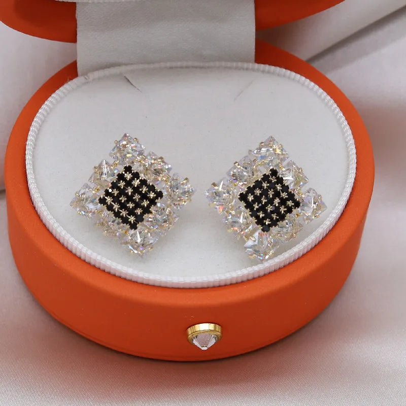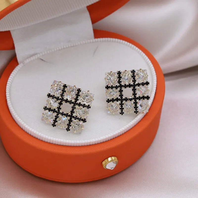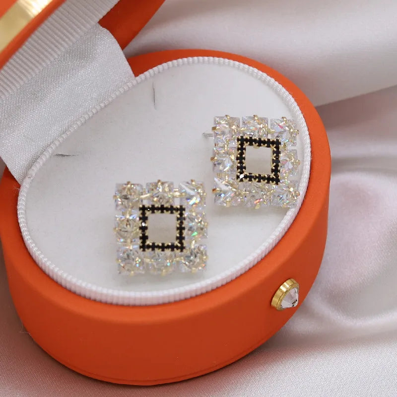 Elegant and sparkling square earrings crafted with high-quality zircon stones. Perfect for weddings and parties.