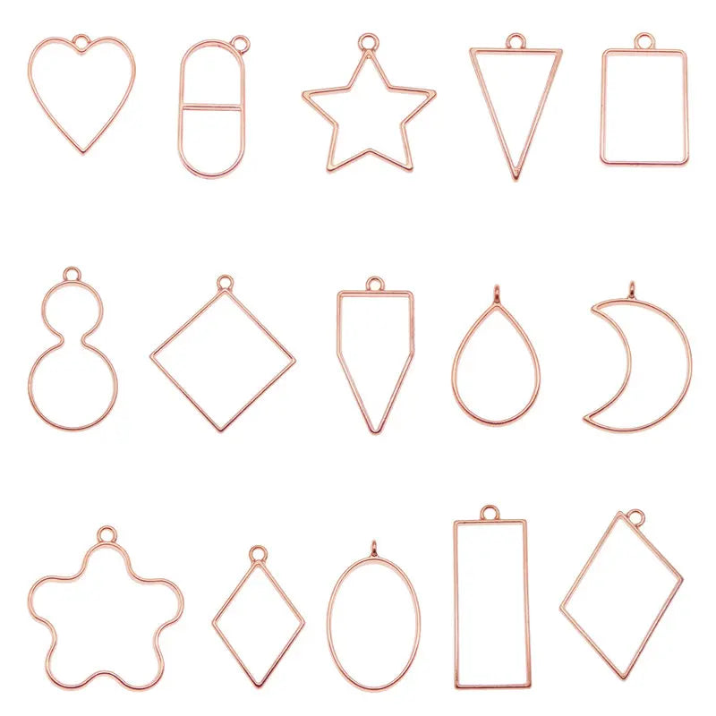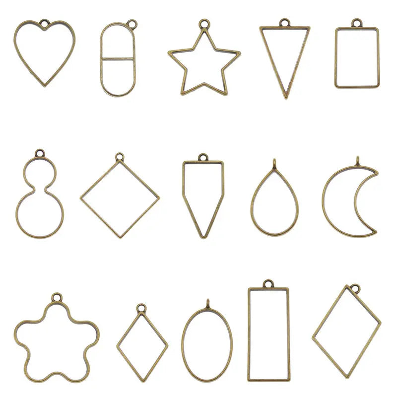 Create unique resin charms with this set of 15 alloy geometric shape molds. The mixed star, moon, and heart designs add variety to your epoxy casting projects.