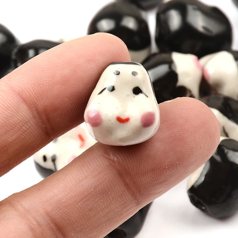 These fat face ceramic beads are perfect for DIY crafts and jewelry making projects. Use them as loose spacer beads or accents in your designs.