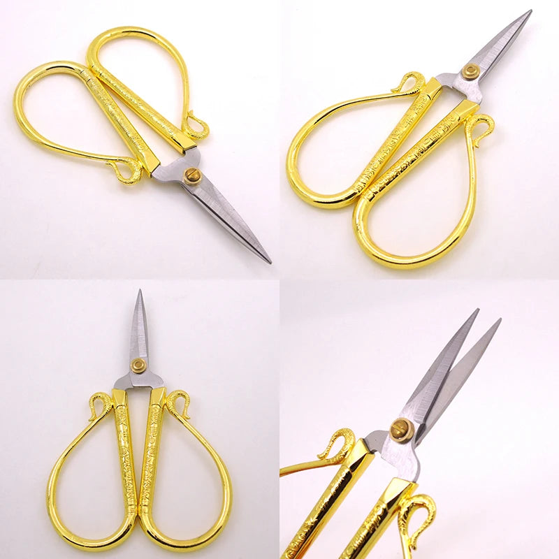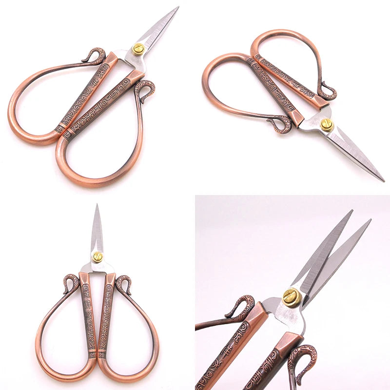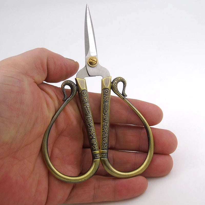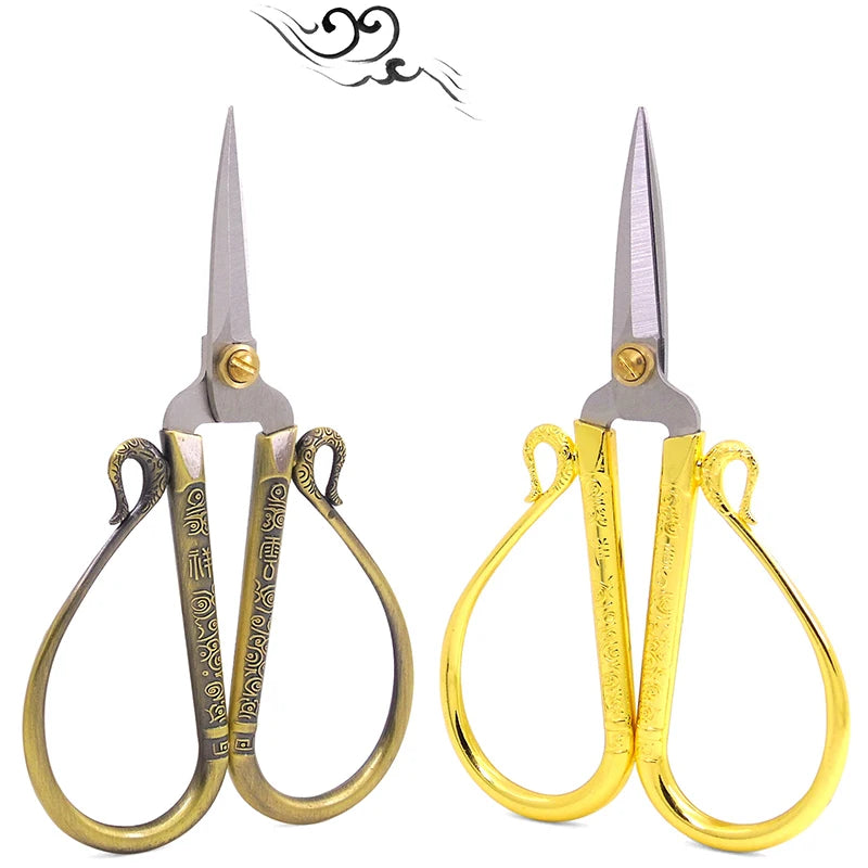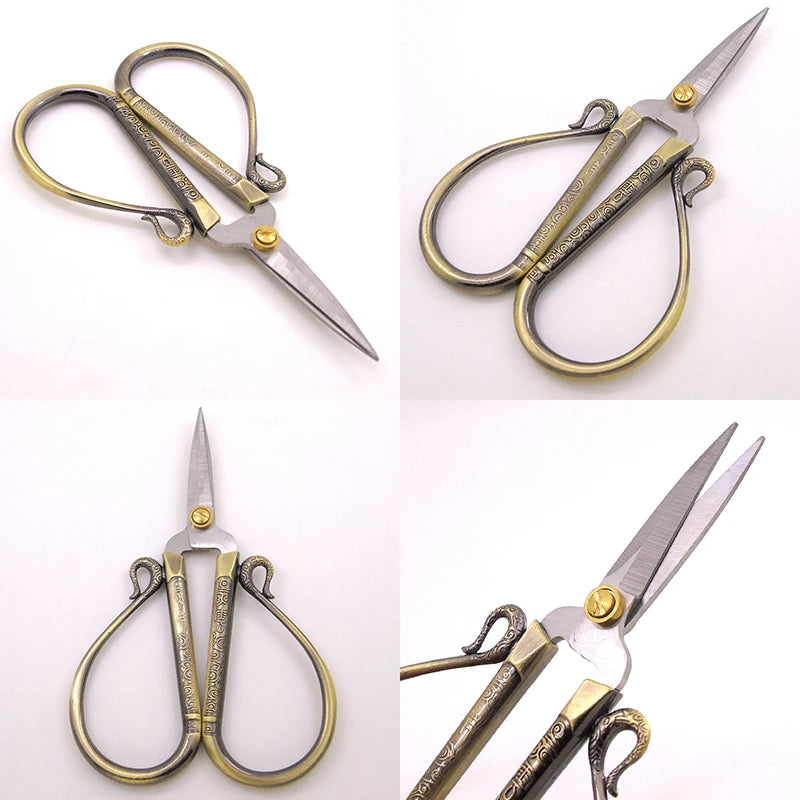Elegant stainless steel scissors with a European retro design, perfect for craft projects, sewing, and handicrafts.