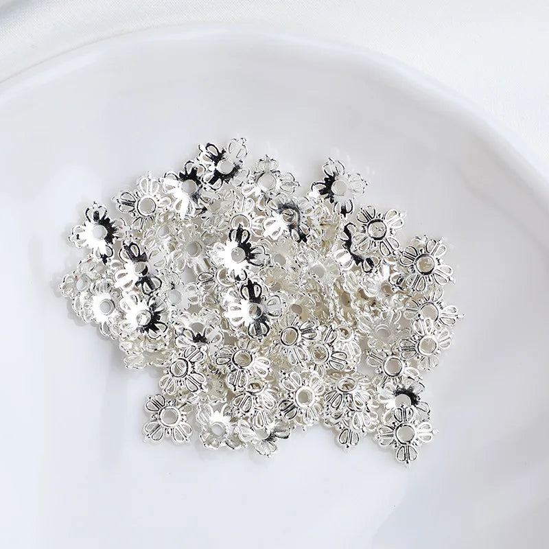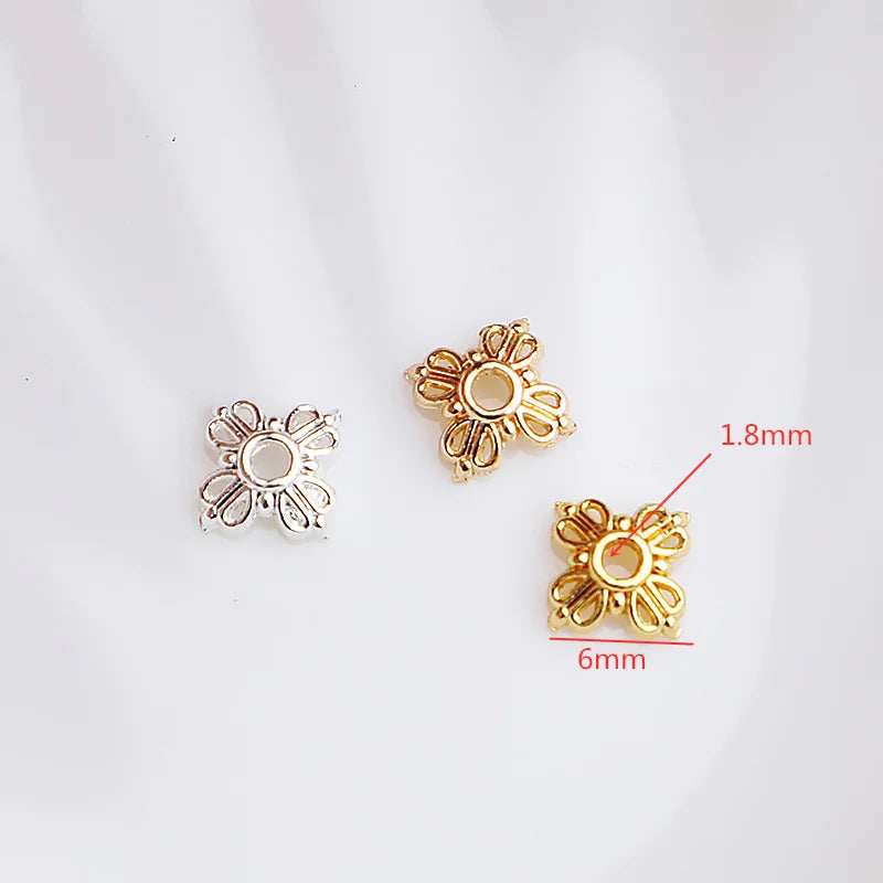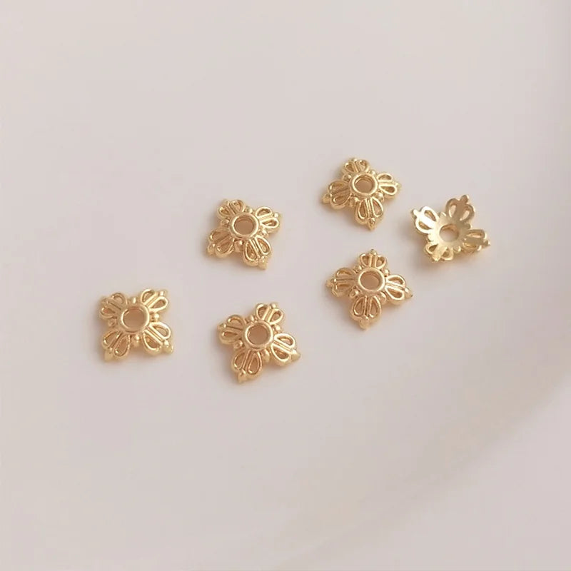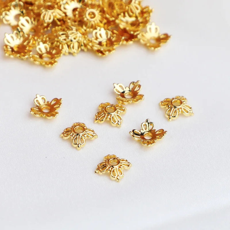 These 20pcs brass flower beads caps are perfect for adding a touch of elegance to your jewelry making projects. Made of plated brass, they feature a hollow filigree design that adds a delicate and intricate look to your creations.