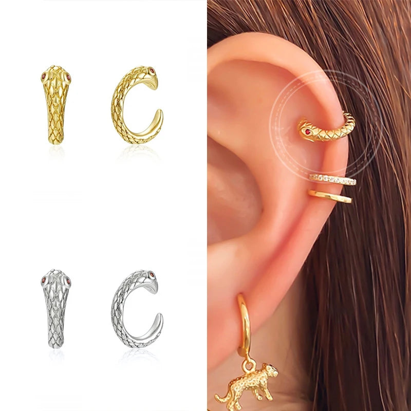 Elevate your style with these punk snake shaped ear clips earrings. No piercing needed, perfect for a bold and edgy look.