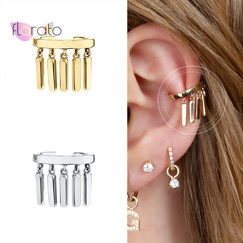 Enhance your style with these stunning tassel clip earrings that don't require piercings. Made from plated 24K gold or 925 silver, these ear cuffs feature a chic design perfect for any occasion.