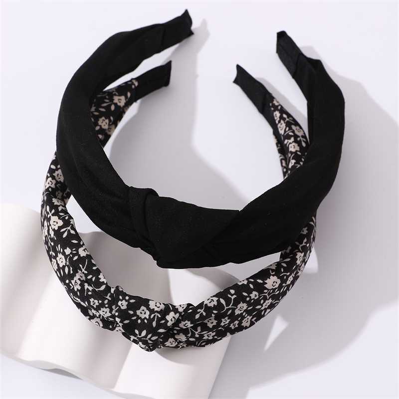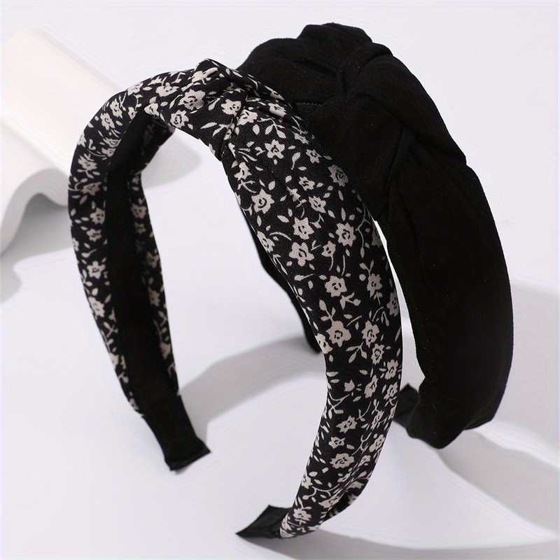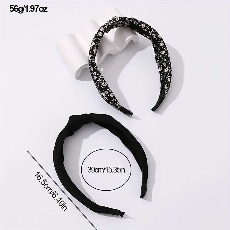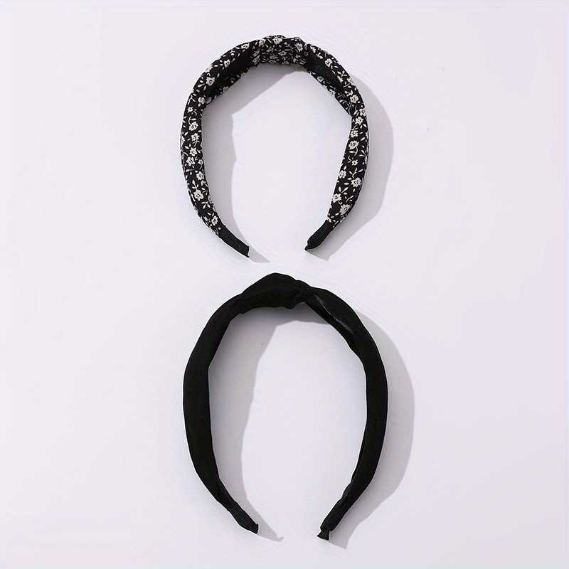 2Pcs Vintage Printed Headband Cross Twisted Knotted Head Wrap