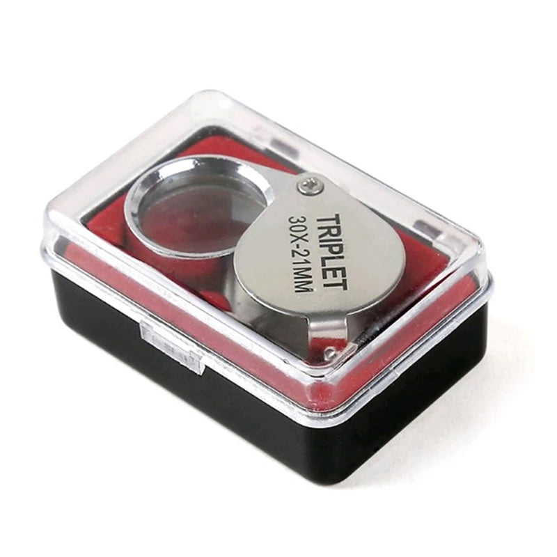 This foldable 30X magnifying glass with a full metal frame is perfect for appreciating jewelry, antiques, and other small objects. Its portable design makes it convenient to carry anywhere.