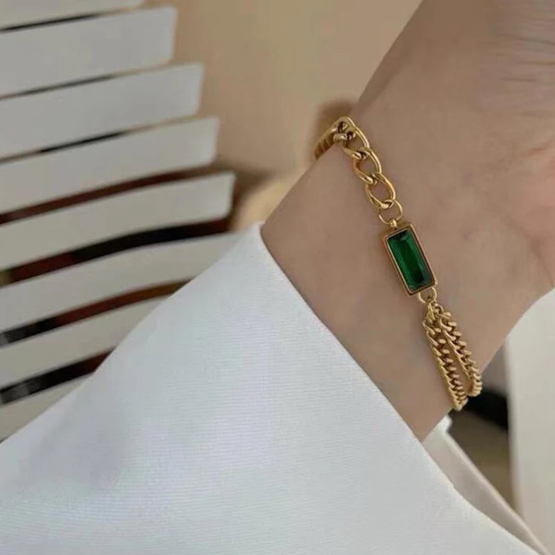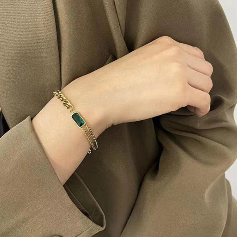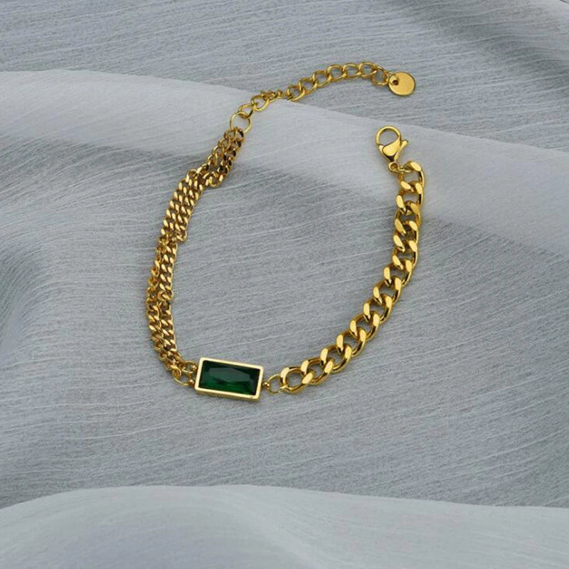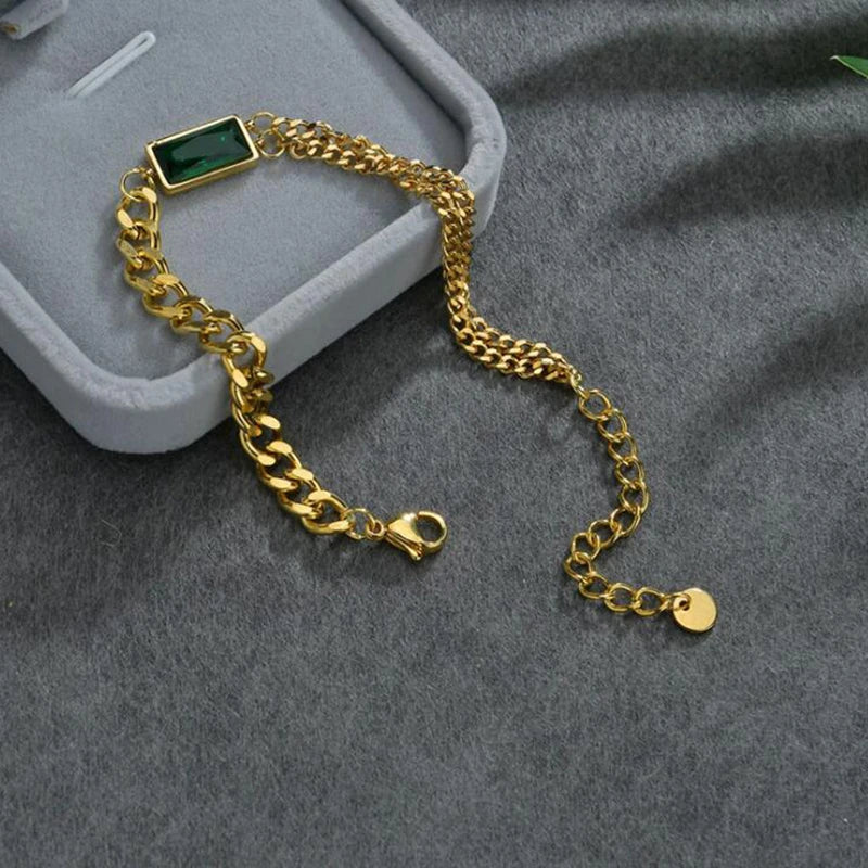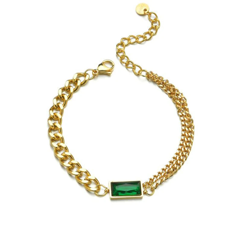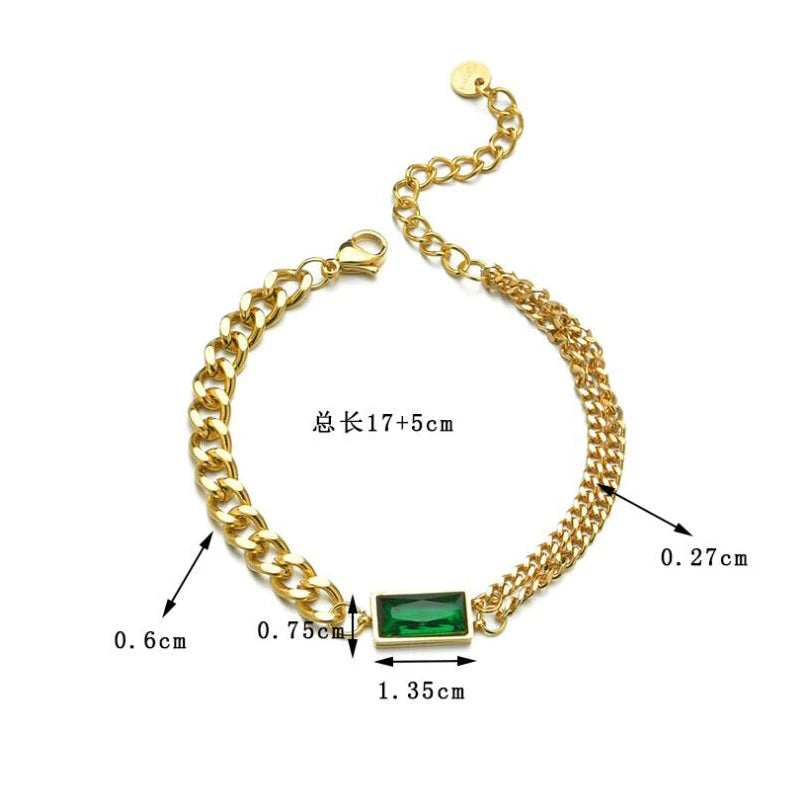 Elevate your style with this upscale 316L stainless steel bracelet featuring embedded zircon stones. The asymmetry design and thick chain add charm to your look.