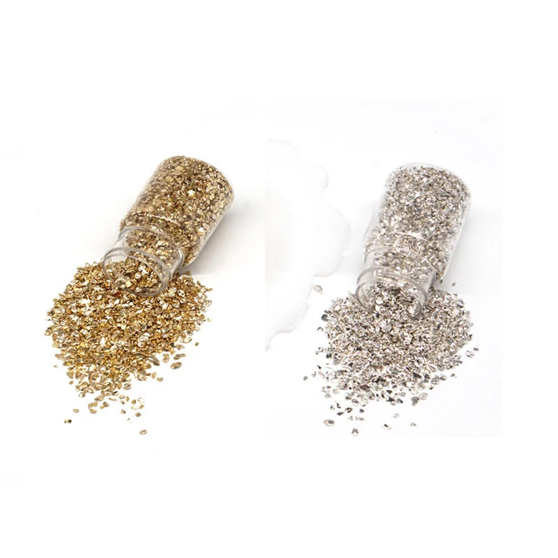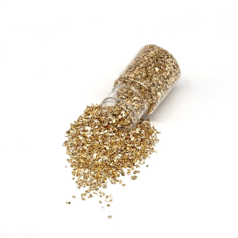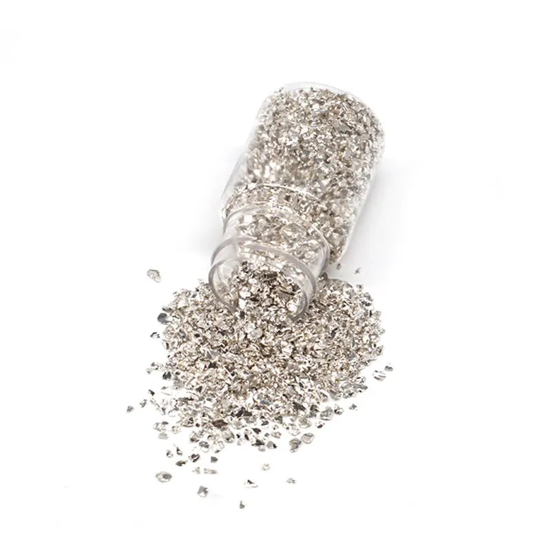 Enhance your DIY projects with this 35g box of metal crushed stone. Perfect for filling resin molds, creating table decorations, coasters, and more. Add a touch of elegance to your crafts with these shiny metallic stones.