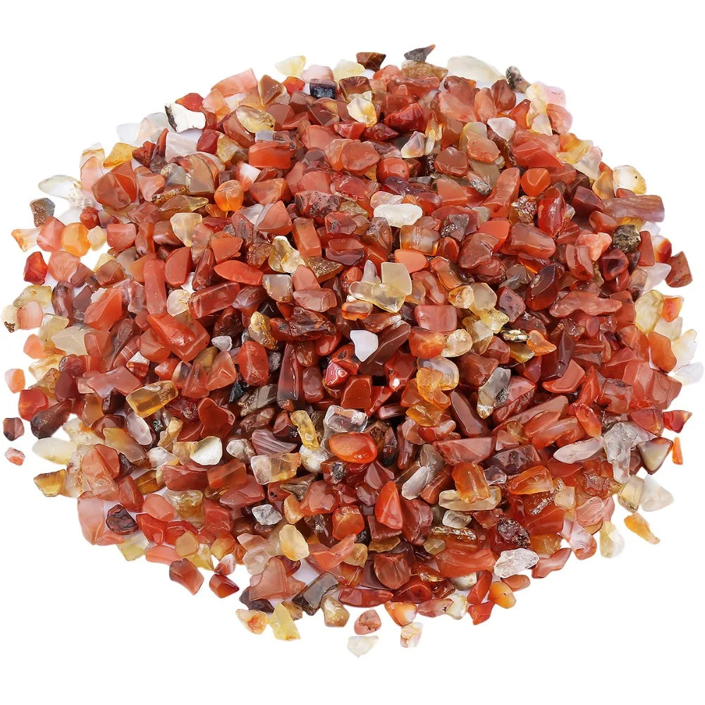 Enhance your jewelry making projects with these natural red carnelian tumbled stone chips. These irregular stones are perfect for creating unique decorations and accessories.