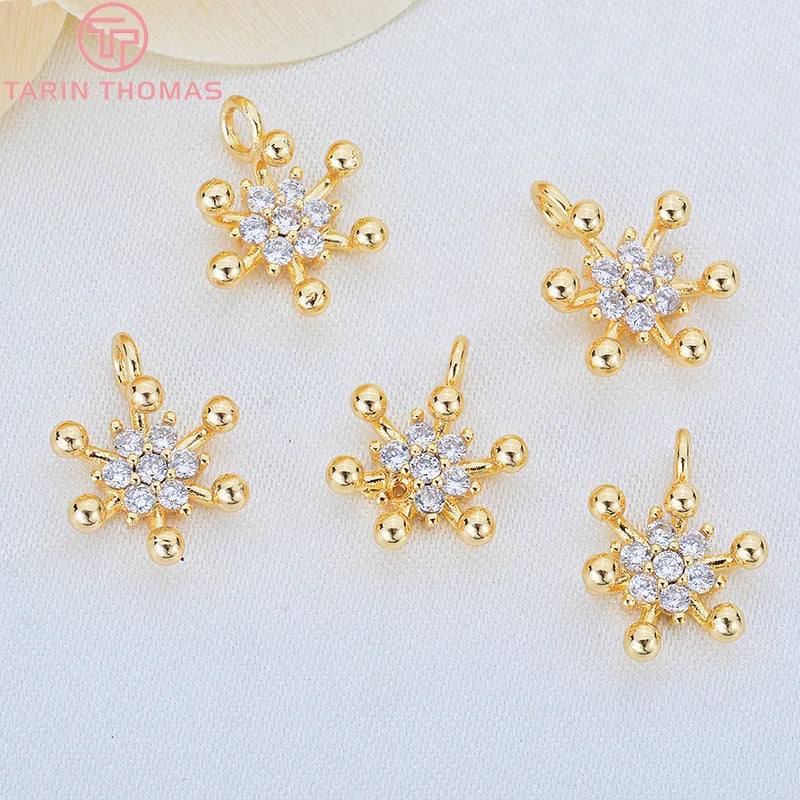 Enhance your DIY jewelry projects with these elegant 24K plated brass charms featuring zircon flowers. Perfect for making unique and stylish jewelry pieces.