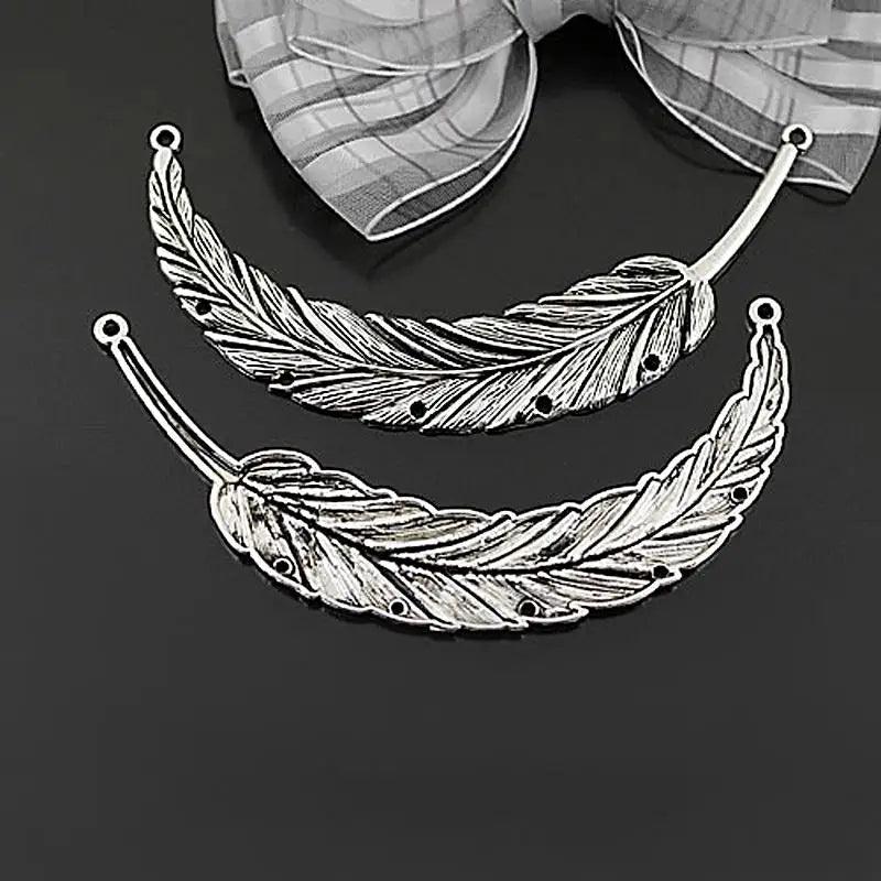 4PCS Antique Silver Big Feathers Pendants Jewelry Making Supplies